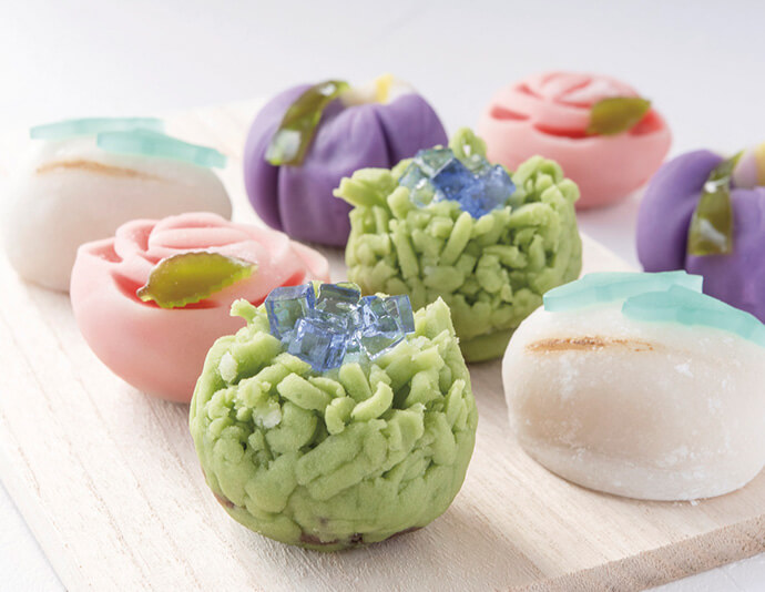 和菓子は水分量によって、大きく生菓子、半生菓子、干菓子に分類されます。日常でいただく和菓子と異なり、茶席やお祝いの席、おもてなしの席で用いられるのが上生菓子。季節に合わせて、繊細かつ高度な技術を駆使して作られます。