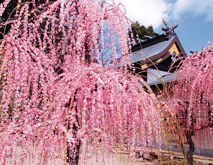 中でも三重県には、いなべ市農業公園や結城神社など、美しい梅のスポットがたくさん。また、鈴鹿の森庭園の「しだれ梅まつり」など、県内の各地で梅まつりが開かれます。しだれ梅まつりでは八重咲の「呉服(くれは)枝垂」、特に樹齢100年を超える「天の龍」「地の龍」が見どころのひとつです。