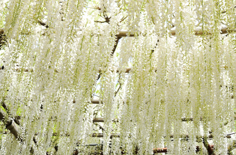 桜が見頃を終える4月下旬〜5月上旬頃、ゴールデンウィークに見頃を迎える藤の花。やわらかな香りと薄紫色の垂れ下がる花の美しさから、万葉集や枕草子にも詠われている日本古来の花です。