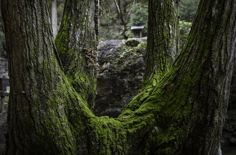 また自然豊かな行者山は古来より神々と通ずる場所として信仰の対象とされてきました。山内には空海が座禅を組んだと伝わる弘法岩や役行者の地蔵といった修験僧ゆかりのスポットも点在しています。