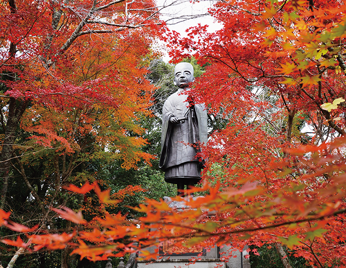 可睡斎は徳川家康公とゆかりの深いお寺。秋葉信仰の総本山でもあり、火防の仏様として信仰を集めています。境内は10万坪と広大で、すべて見て回るには数時間を要するほど。特に紅葉の季節には近年植栽したモミジと境内の御堂との調和を楽しみたいものです。本堂や御真殿のほか、武田勢に追われた家康公が隠れて命拾いしたと伝わる「出世六の字穴」、おなかをさすると福を招くという大黒様「おさすり大黒」が見どころです。