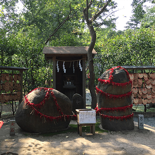 恋愛運は葛原岡神社で良縁を願いましょう。訪れたらまずは社務所で縁結びのお守りを授かりましょう。 赤い糸を通した五円玉が授与されるので、これを縁結び石のしめ縄に結ぶと願いが叶うとか。そばに祀られる良縁の神様、大黒様にもあわせてお祈りしたいものです。