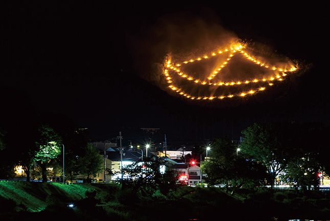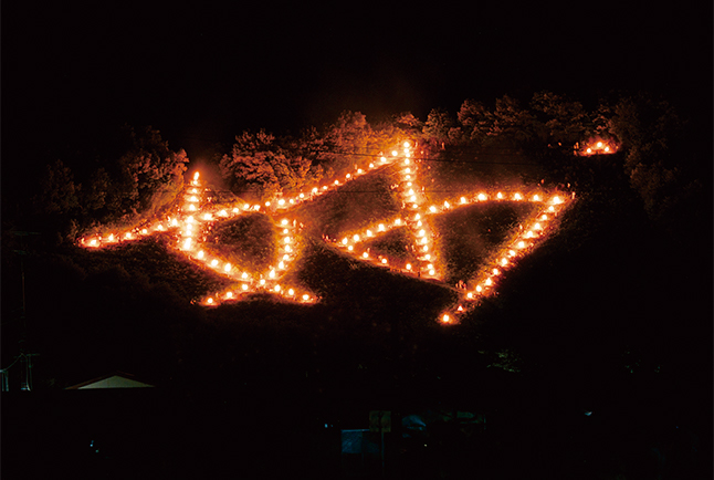 送り火は、大文字山の「大文字」、大北山大文字山の「左大文字」、松ヶ崎西山・東山の「妙・法」、西賀茂船山の「船形」、嵯峨鳥居本曼荼羅山の「鳥居形」の6つ。山の斜面の暗闇にくっきりと浮かび上がる光景は、思わず祈りを捧げたくなるような荘厳さです。