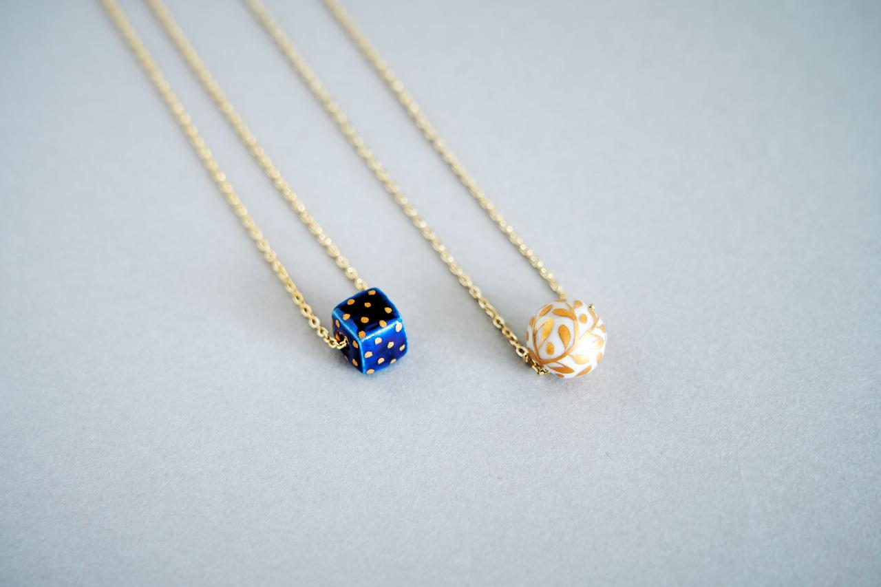 アクセサリーも人気のジャンルだそう。〈幸兵衛窯〉でも繊細なネックレスを作るほか、〈七窯社〉のイヤリング、荒木亜美さんのブローチなど、顔まわりを華やかにしてくれるデザインのものが揃っている。種類もさまざまだから、プレゼントとして選ぶのも楽しい。