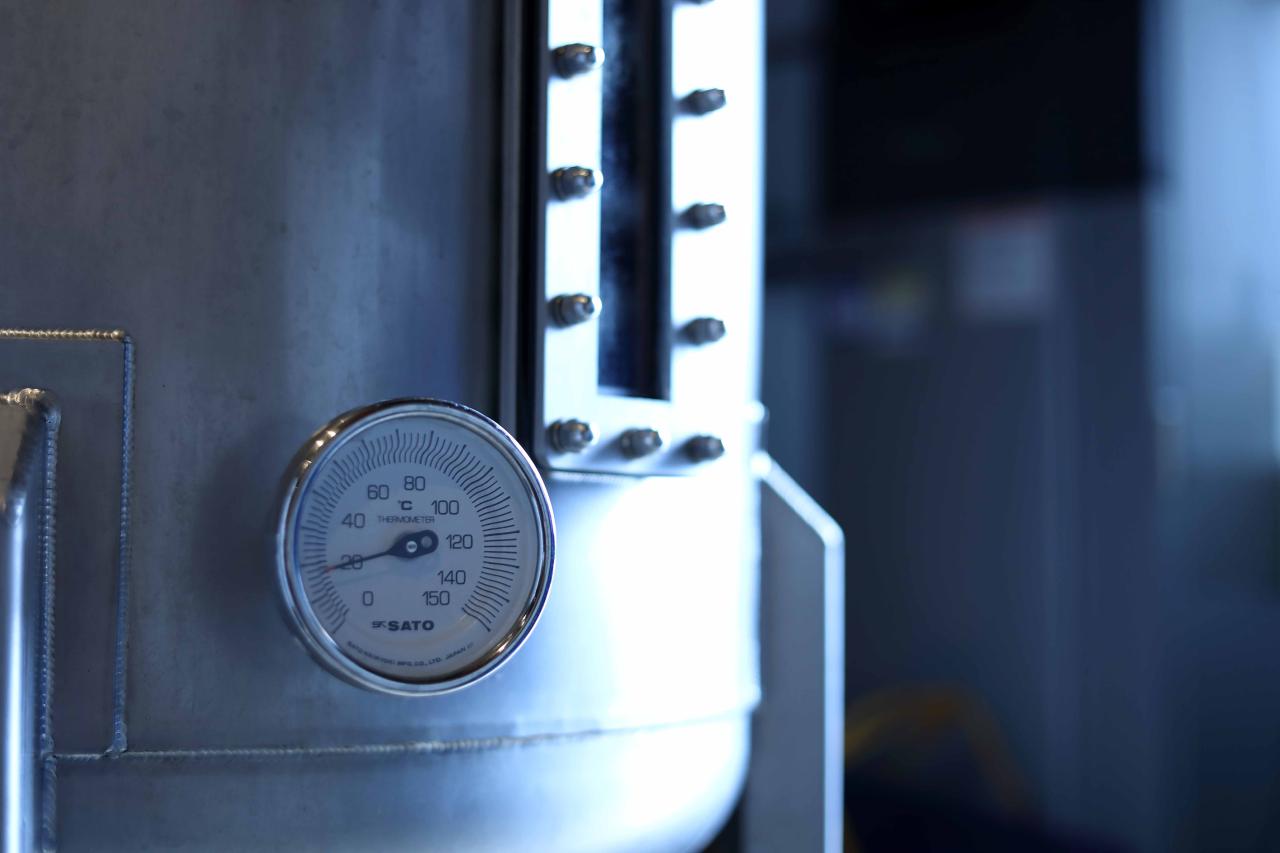 さっそく蒸留所を見せてもらうことに。蒸留器やタンクなどが設置された蒸留所は、意外にもとてもコンパクトなスペースだった。
