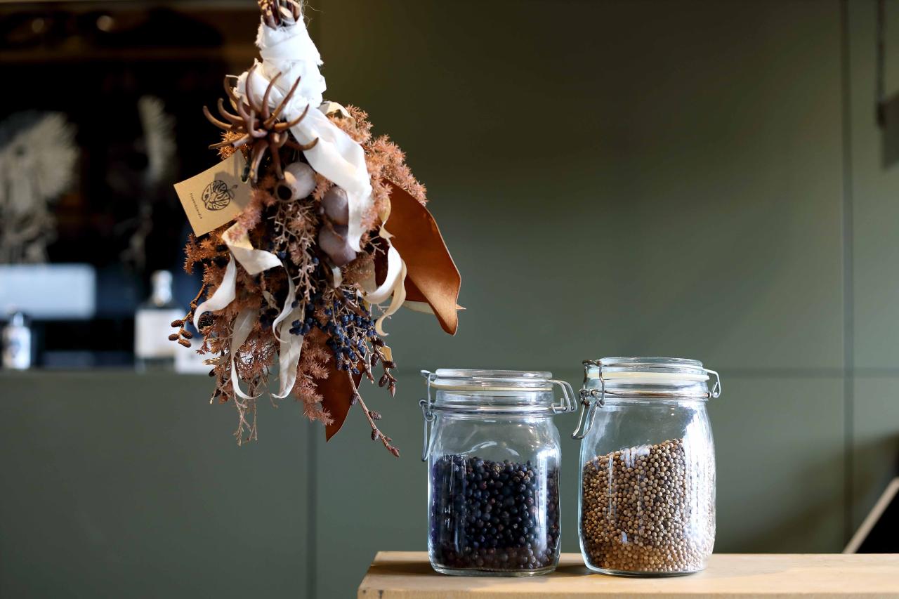 一番気になっていた「LAZY MASTER 〜Heavenly Rose〜」はバラの華やかな香りがアクセントに。煙で香りをつけた「LAZY MASTER 〜Smoky Gold〜(レイジーマスター スモーキーゴールド)」も、ウイスキーを思わせるスモーキーな香りが癖になる。どれも香り高く、実際に飲んでみたい気持ちがふつふつと湧き上がってきた。せっかくなので、併設のカフェバーでクラフトジンを飲んでみることにした。