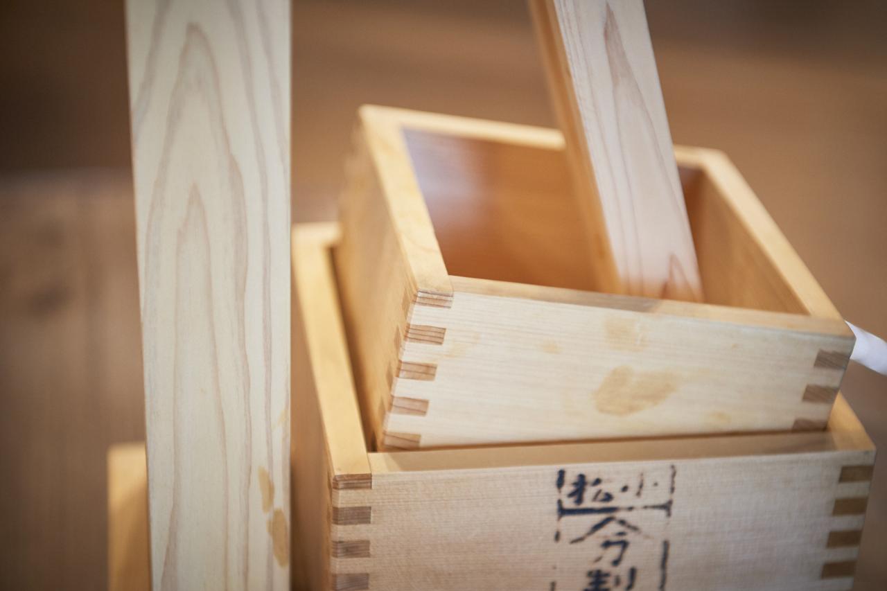次にひと回り小さい升を上に重ねて。このあと搾り器で上から圧をかけ、醤油を搾っていく。