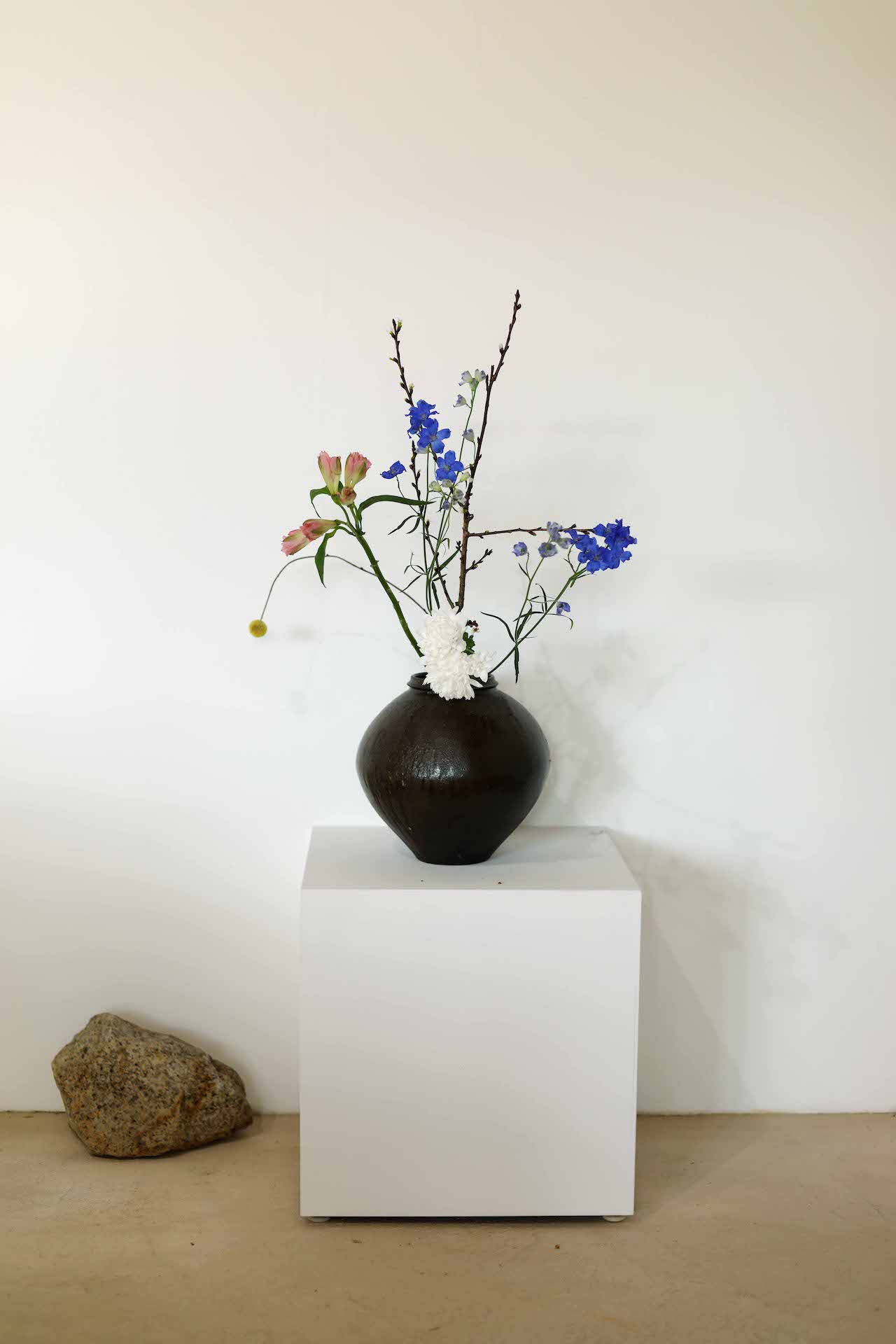 「自然で生えてる感じをよく観察して、それを真似するということもいいかもしれないですね。(花束の状態で)ぎゅっと詰まった揃った感じもそれはそれでかわいいですけど、生けるときにはちょっと隙間を開けて、花と花を当たらへんようにするというのもいいと思いますね。茎がね、きれいなんですよ。お花が生えている茎が、きれいやなあと思って」