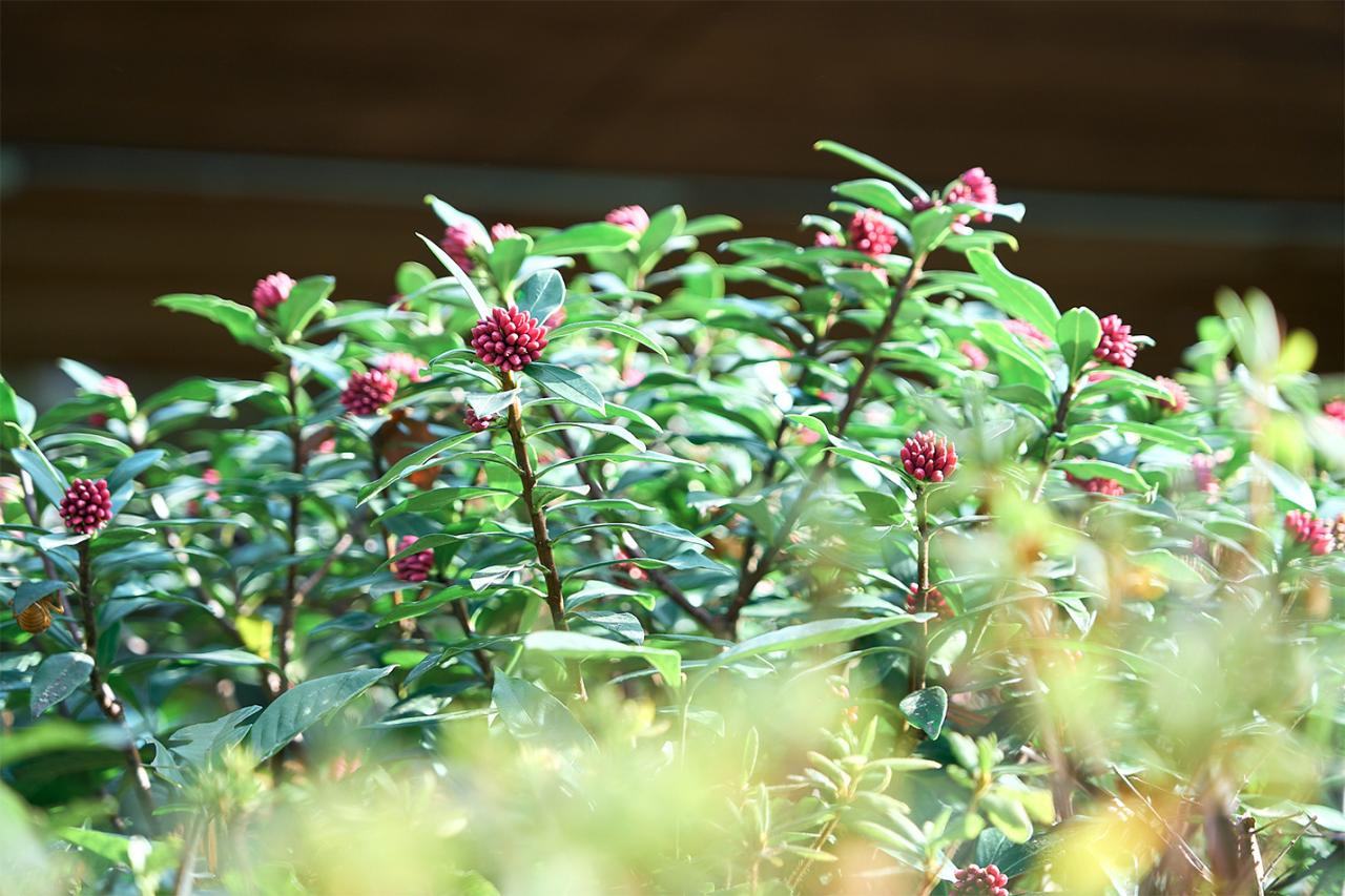 正門横にある1階建てがレストラン。2022年10月にリニューアルし、イタリアンをベースにした料理がいただけるようになった。入店するとまず、開放的な景色に驚かされる。フルハイトの窓が2面の壁を作り、四季折々の彩りを見ることができる。季節になれば、辺りは桜色に染まるのだとか。常緑樹も綺麗に植えられ、冬でもこの美しさ。この空間でのランチなら、週末には予約で満席になってしまうのも頷ける。