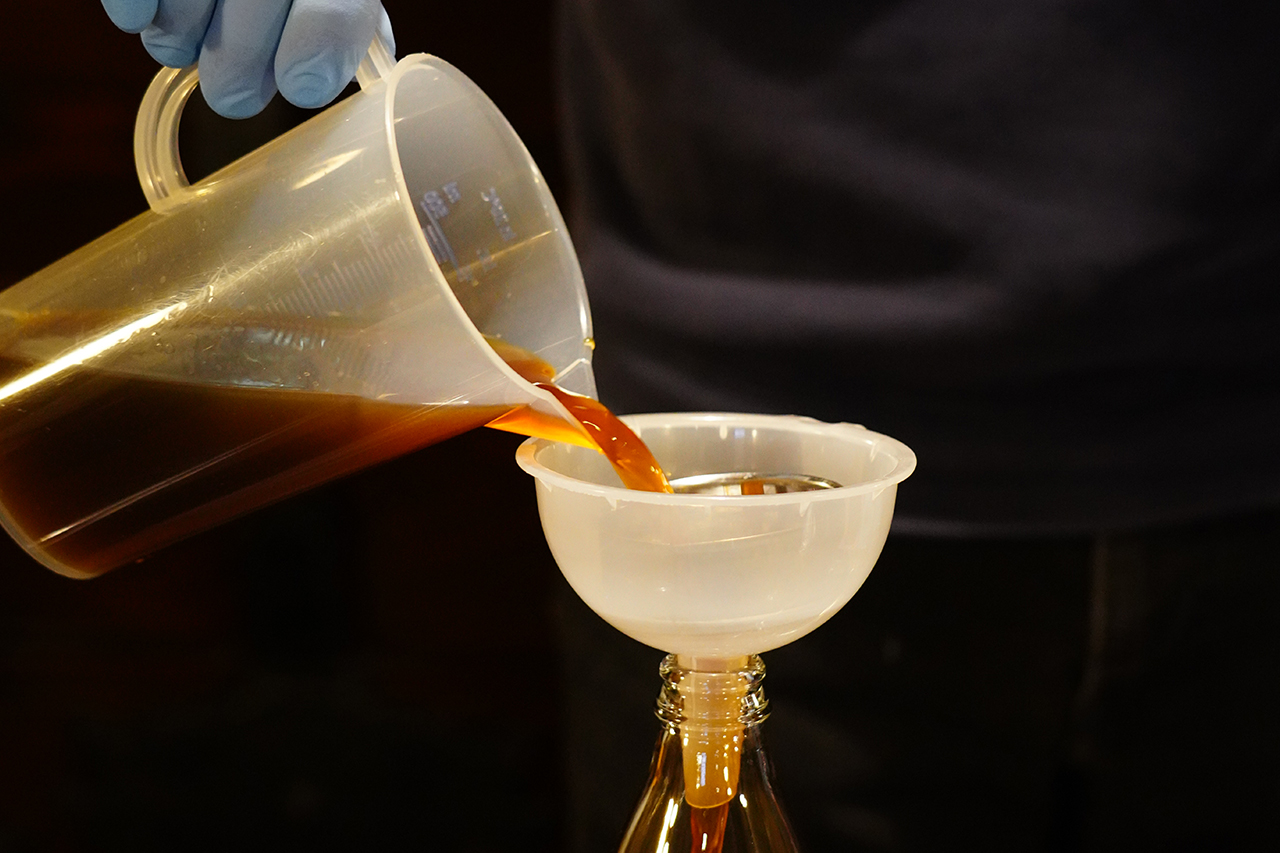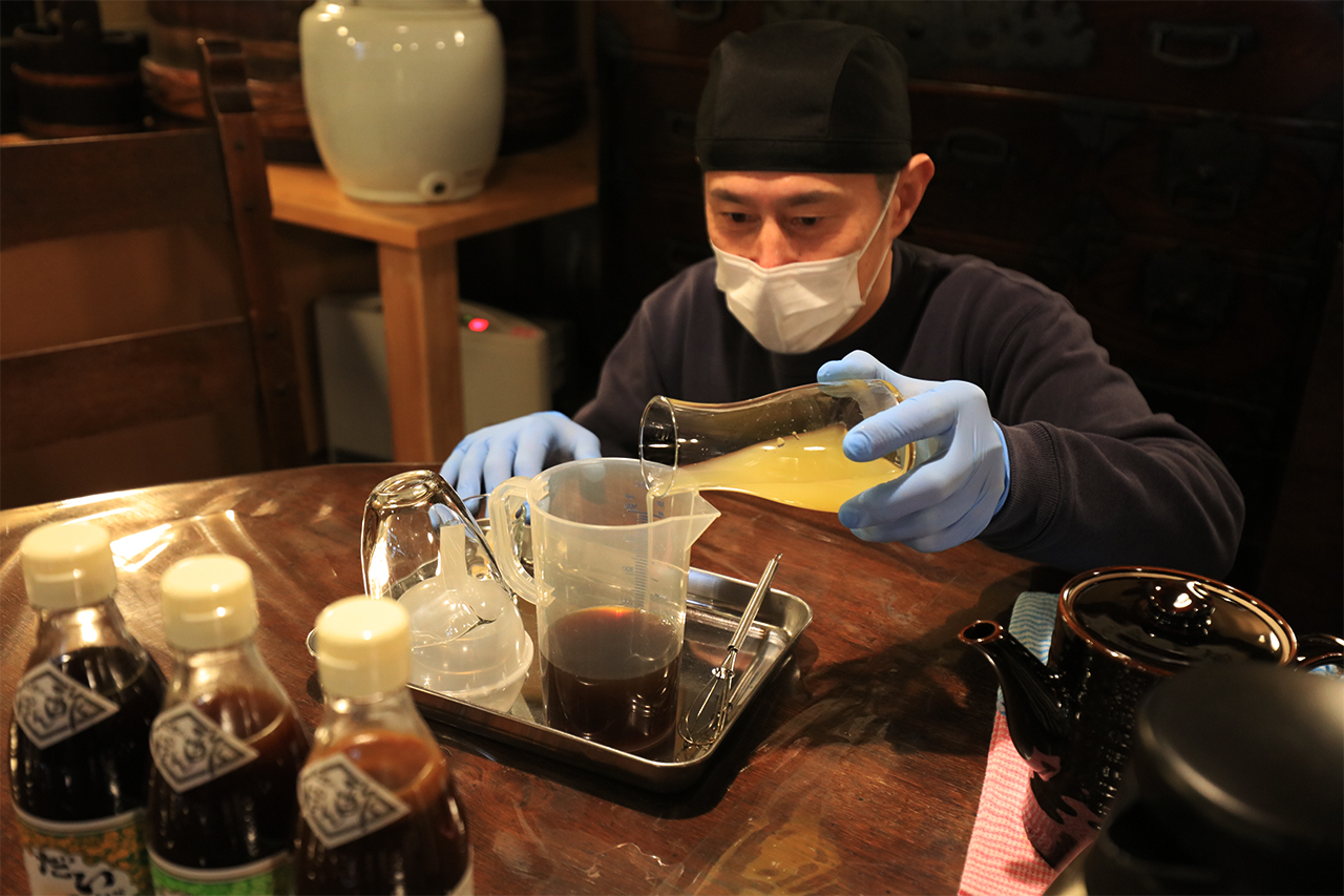 グループで参加されると、それぞれの味の違いに大いに盛り上がるそうだ。今回の体験では147mlの橙の生果汁を加えたぽん酢にした。