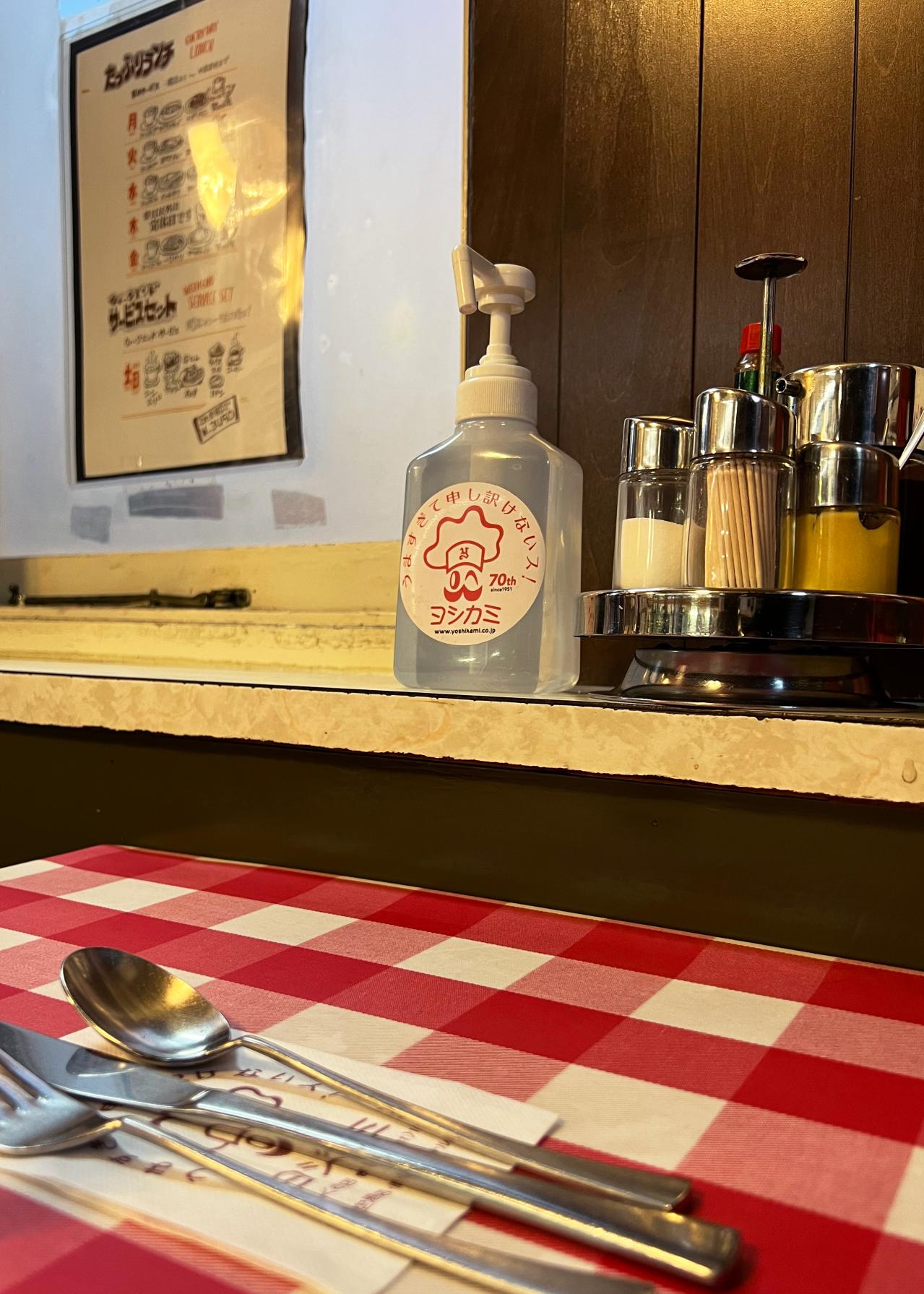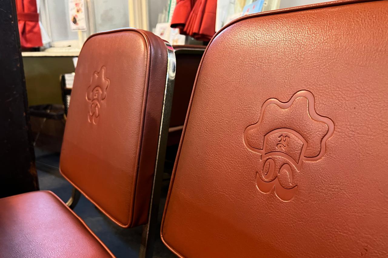 店内で目を引くのが口ひげをはやしたコックさんのマーク。外装から店内、コックコートといたる所で見つけました。こちらはお店のキャッチコピー『旨すぎて申し訳ないス!』と共に昭和35年(1960年)頃より使われるようになったそう。このフレーズは「下町の洒落」「ここまで口にだしたからにはそれなりの料理を」という2つの思いが込められているとの事です。