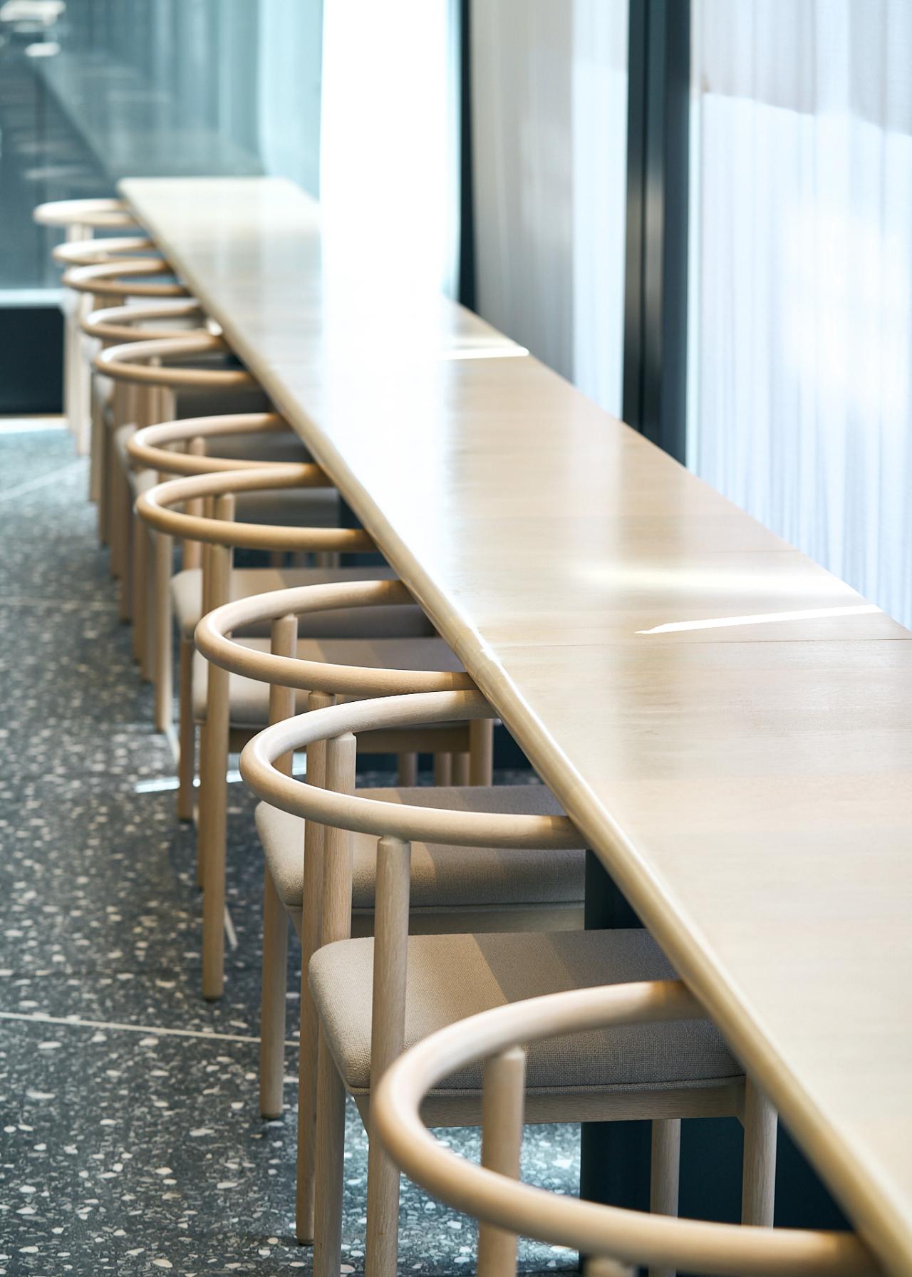 食事を終え、再び店内を見回していると、隅々までデザインが施されていることに気づく。家具はオリジナルで作られ、イスは「KYOBASHI」と名付けられたものだそう。スタッフの制服も素敵で、聞けば〈N.ハリウッド〉のデザイナー・尾花大輔さんによるものだそう。今後は美術館の中を巡って、一つ一つのデザインに触れてみたい。