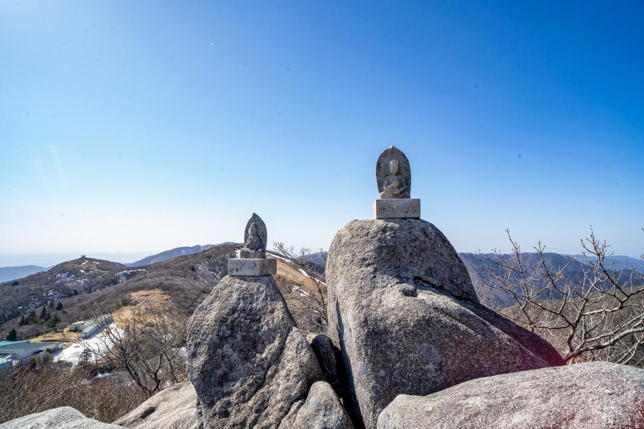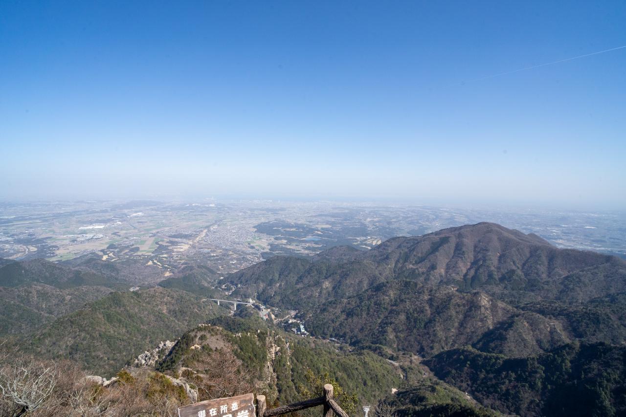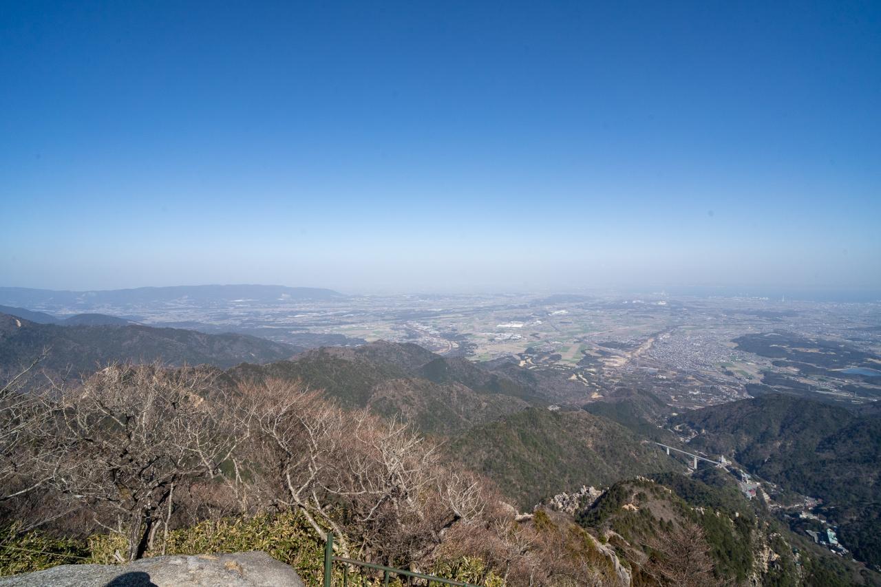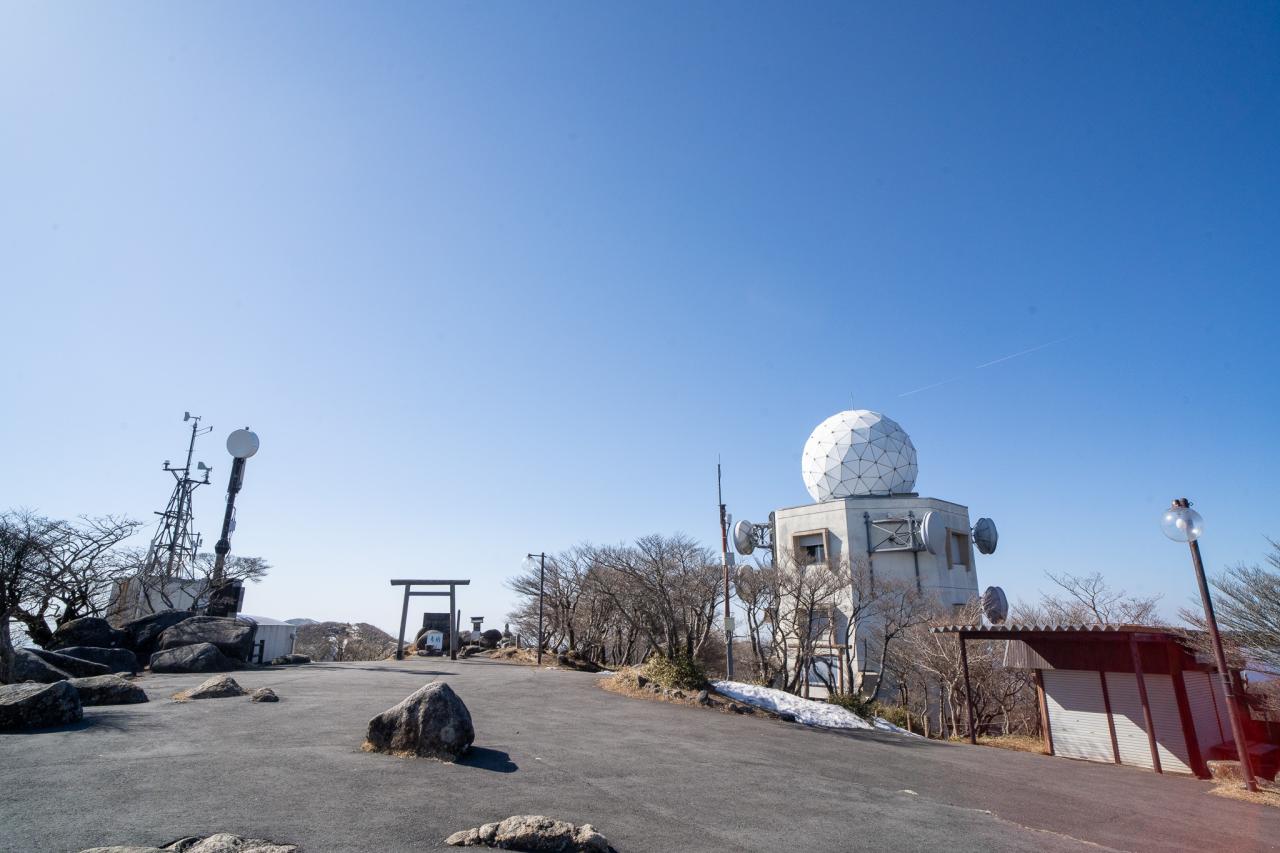 広場周辺には雨量レーダーの建屋や御獄神社の鳥居やお地蔵さまがいらっしゃるのですが、東側の鳥居方面からは広大な伊勢平野と伊勢湾を臨むことができます。まぁなんという解放感というか、見晴らしというか、とにかく絶景です。春霞で遠方が霞んでいますが冬の澄んだ日に撮影できれば抜群の見晴らしマップが作れそうです。。。