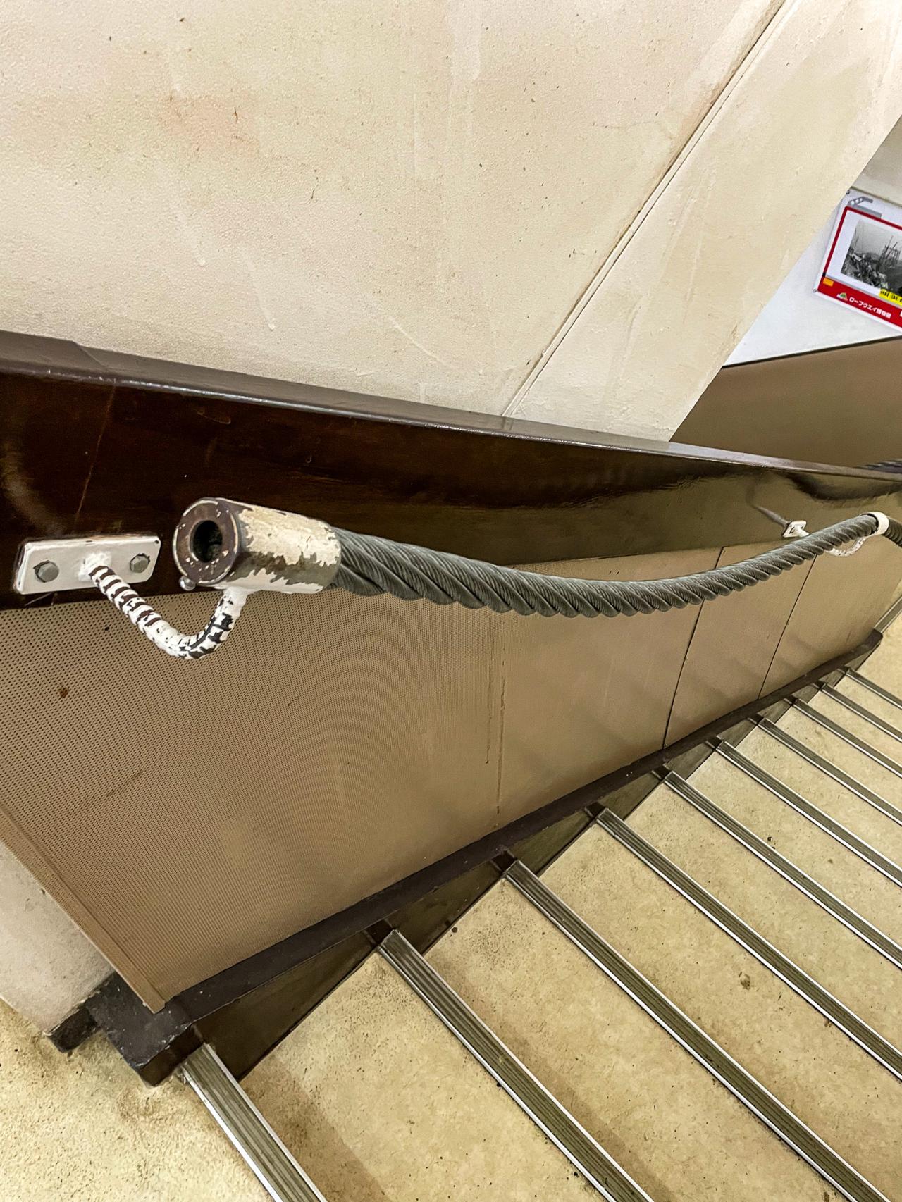 行かないわけにはいかなと、階段を登って気づきました。手すりがロープウェイのロープです!おしゃれ!