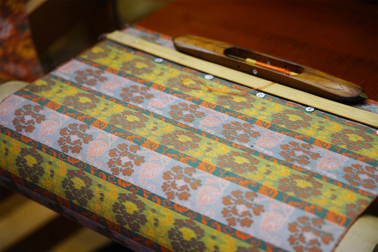 代替品もあるが、やはり職人の手仕事で作られた道具は使い勝手が良いそうだ。同じく、織機も機械ではなく、人力で織る手機(てばた)だからこそ表現できる風合いがあるという。人にしか生み出せない美しさが、錦織を至高の芸術へと昇華させている。