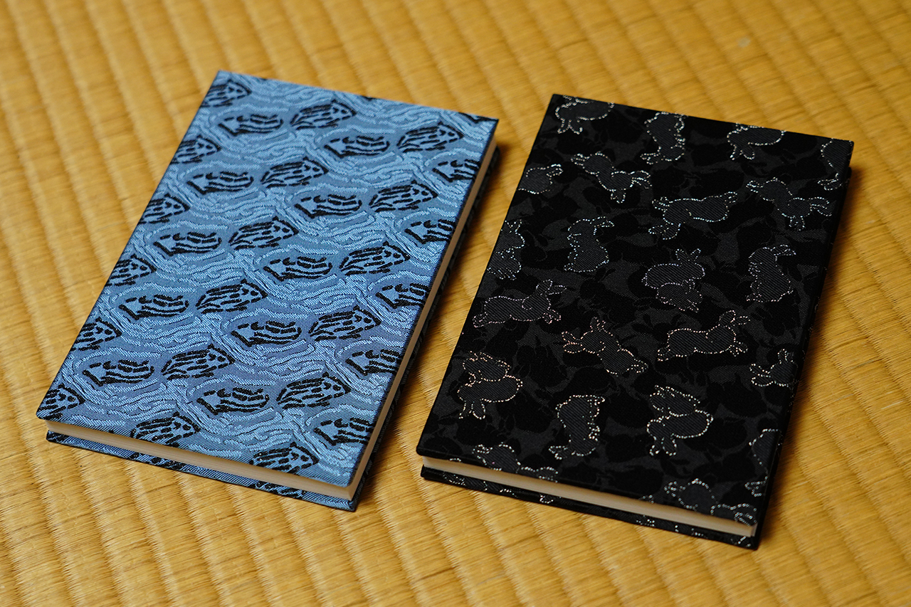 迷いながら、折り鶴をイメージしたという柄に決めた。ボンドで生地を接着し、金型にあわせて折り込む作業は小学校の図画工作を思い出す。親子で気軽に伝統文化に親しむ機会としてもおすすめだ。