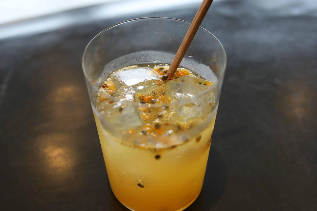お店のものはほとんど、自分たちでつくっている。「スツールは松阪市の飯高町産のヒノキなんですけど、鳥居を作るときの廃材でできています。カウンターも同じく飯高町の廃材でつくって、表面を黒で塗装してあります」。スツールには乾燥による伸縮を和らげてひび割れを防ぐための“背割り”入り。「こういう作業ひとつにも意味があるよ、ものを作るときにしっかり考えて建物を守ってるよっていうのがもっと伝わったらいいなと思って。勝手に職人さんらの代弁をしてる感じですね」