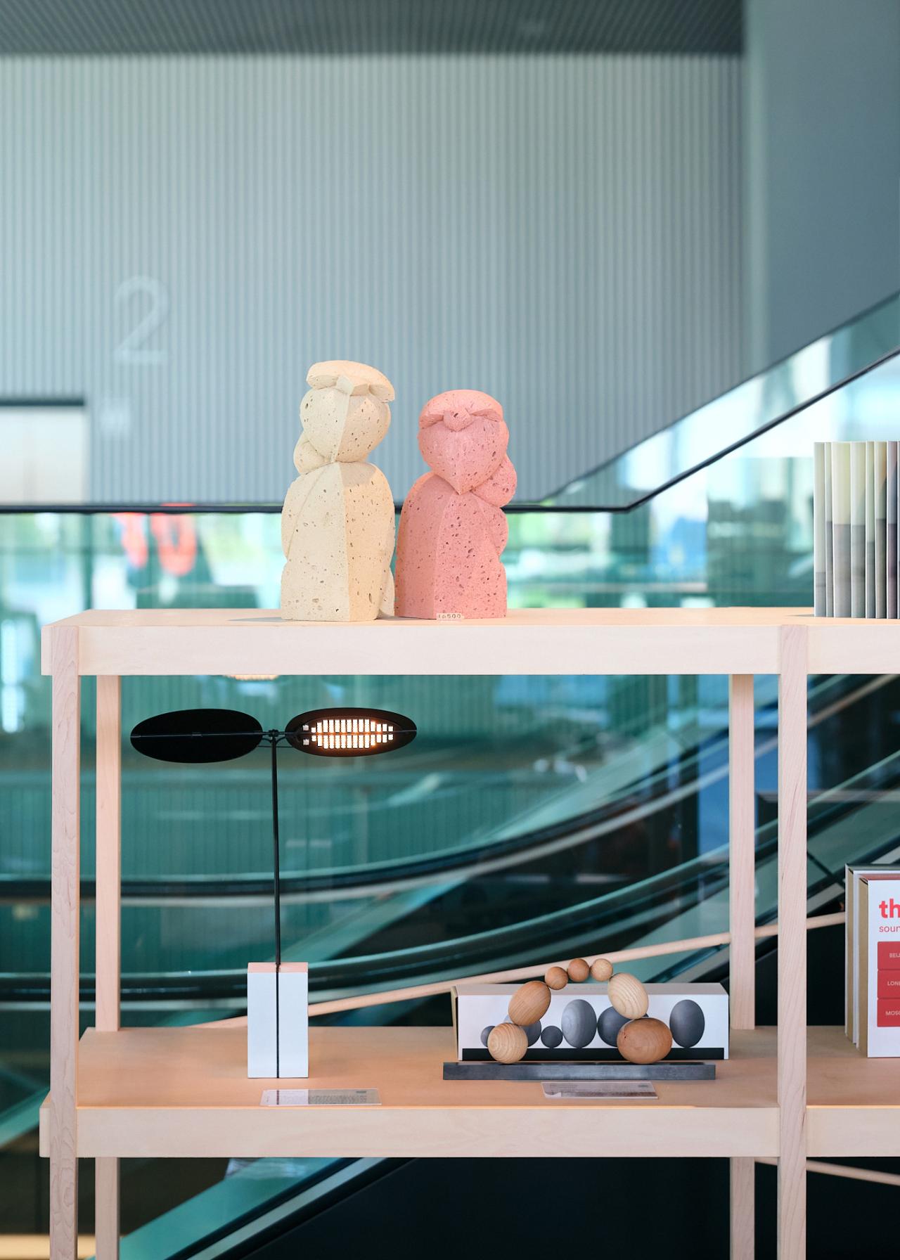 ここでしか見られないラインナップを楽しみたいなら、今回は2階にあるミュージアムショップ「dot to dot today」へ。開放的なエリアにクールなインテリアが設けられていて、入る前から期待が膨らむ。