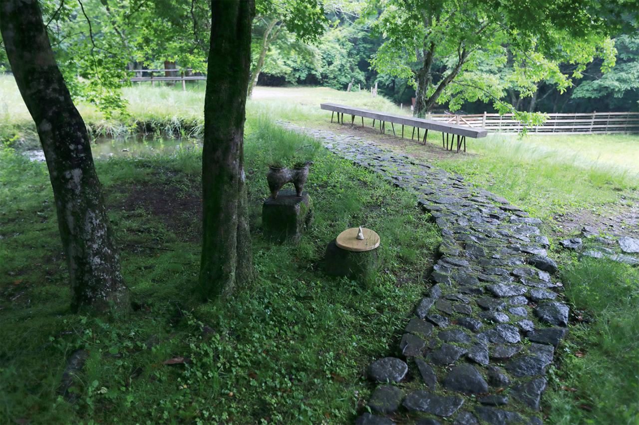 窓辺に静かに横たわる鹿は佐知子さんの作品。息づいているような温かみがあり、そっと撫でたくなる。