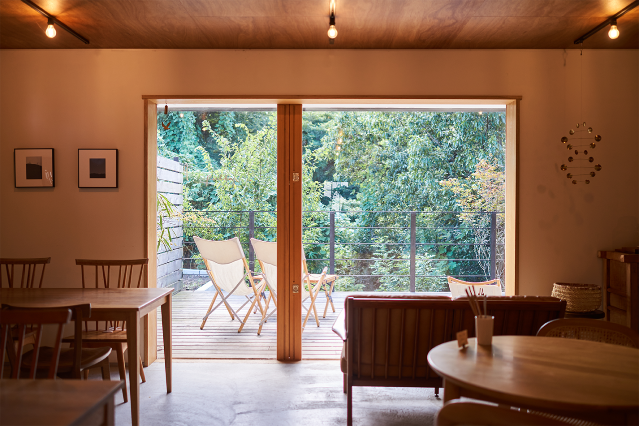 柿田川公園で自然を満喫したら、近くにあるカフェ〈pechka(ペチカ)〉へ向かう。〈pechka〉は三島広小路にある人気のワインバー〈otro(オトロ)〉の姉妹店。2021年4月にオープンしたお店は閑静な住宅街にあり、木の風合いを活かした外観がとてもおしゃれ。