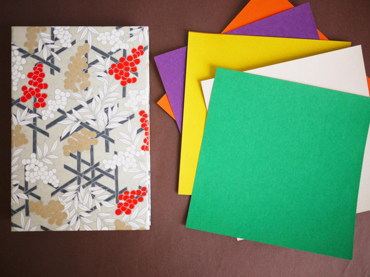和柄が魅力的なシックなものやシンプルな無地のものなど、素敵な表紙の御朱印帳はたくさんありますが、せっかくなのでオリジナルでアレンジを。おすすめはちぎり絵。素材となる折り紙は、手に入りやすく種類も豊富です。お好みの色や柄を選んでちぎって貼るだけで、簡単に雰囲気を出すことができます。さらに場所やテーマなどのタイトルも切り貼りすれば、オリジナルの表紙の完成です。表と裏で色を変えるなどをしてもよいですね。