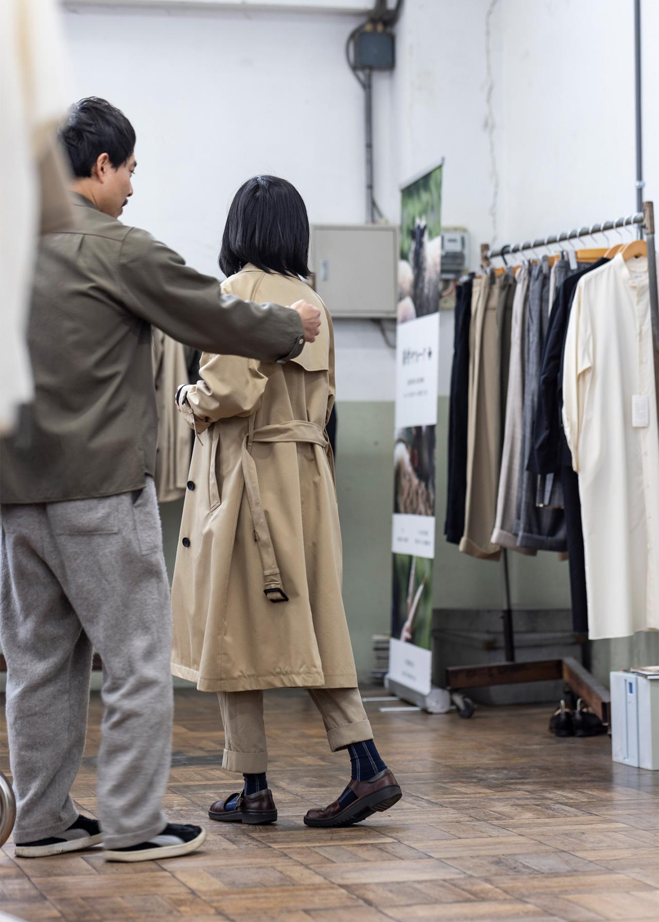 今シーズンの新作だという「はたやトレンチ」を羽織らせてもらった。