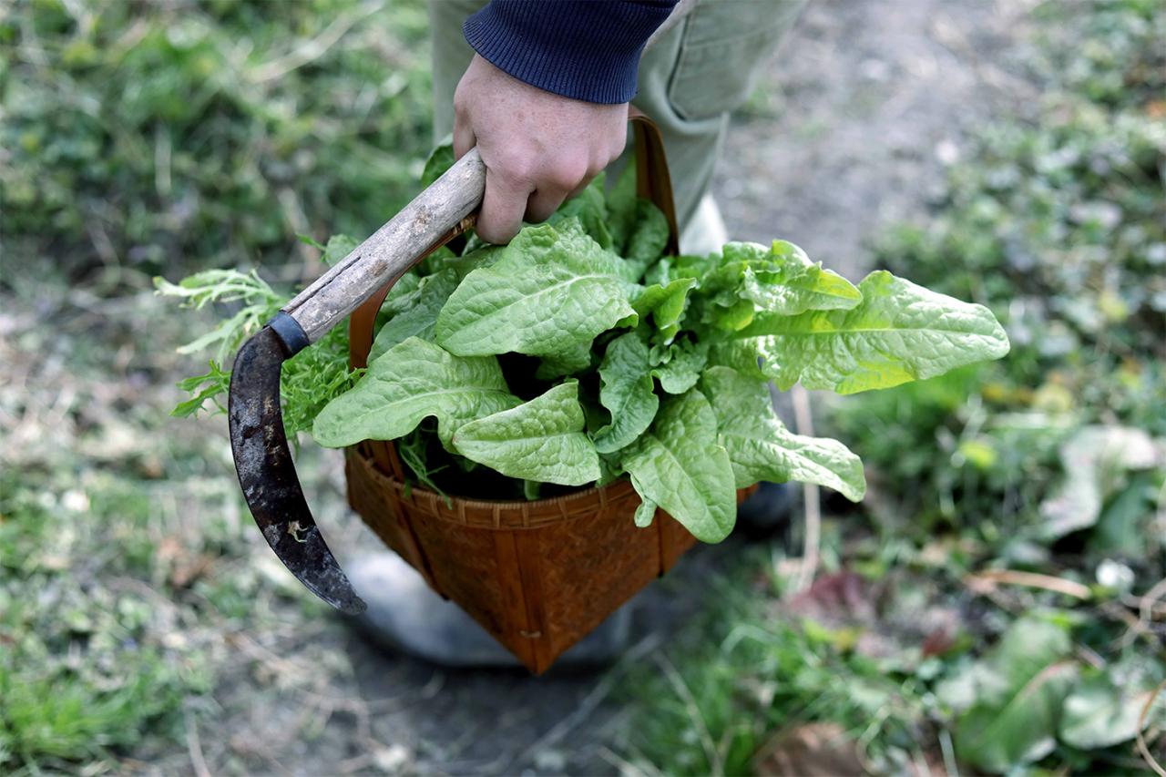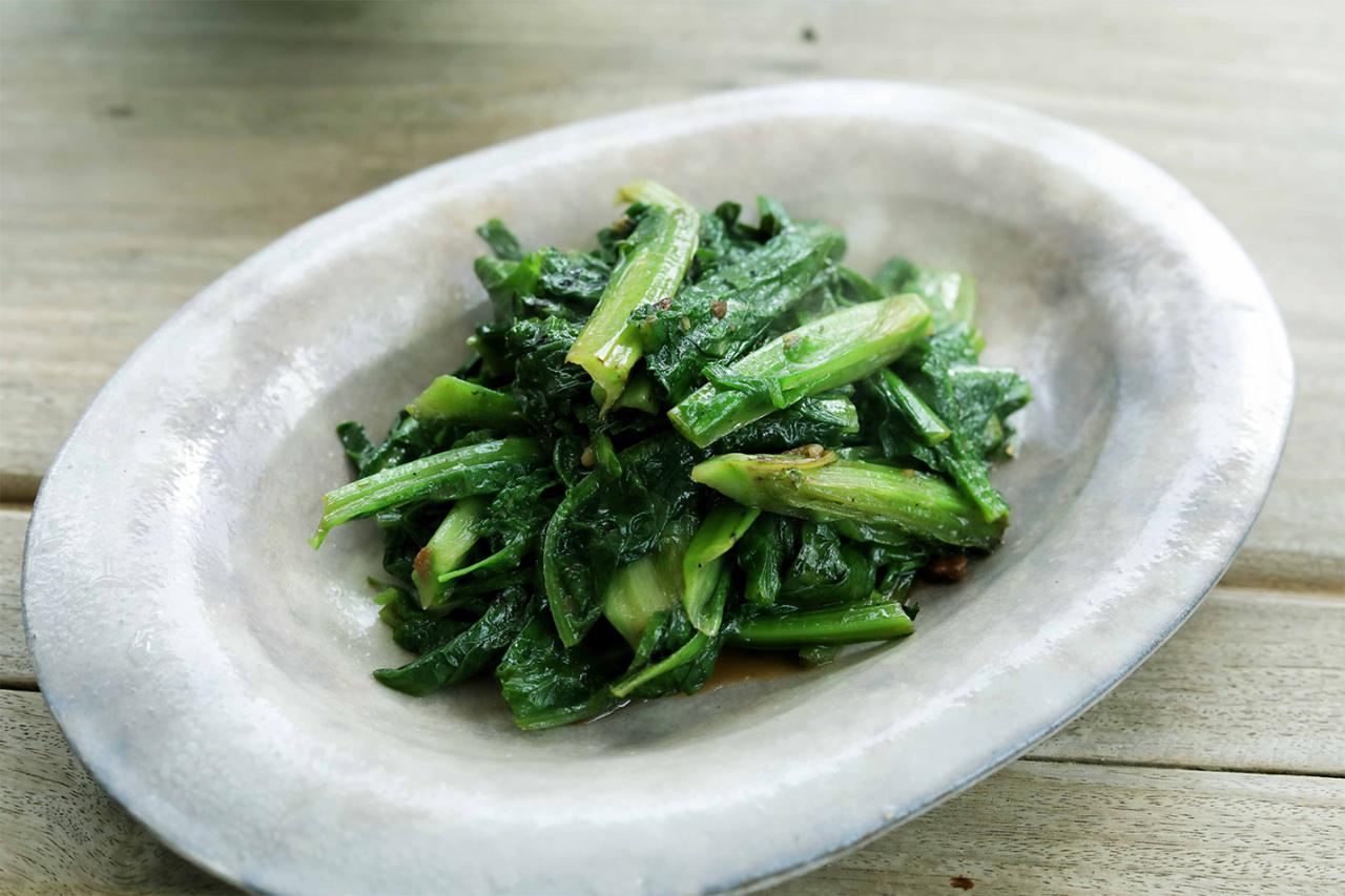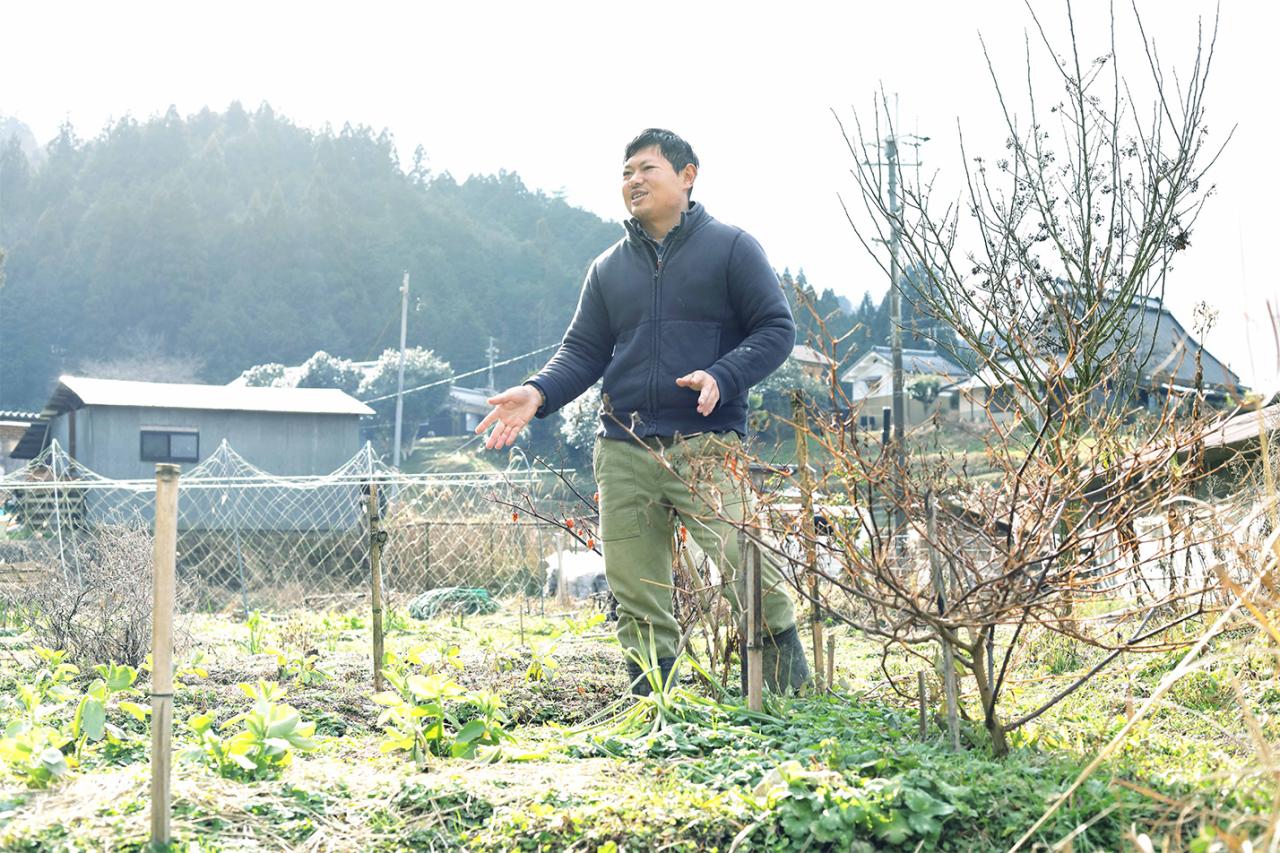 大根は早めに収穫して土に埋め、藁をかぶせておけば保温ができて生で使える。この藁も、お米を作るときの稲木干しで出来たもの。「必要な時期に必要なものが出来上がってくれる。感動ですよね、自然のサイクルってのは本当にうまいことつながってるんやなって」。農場長に“道”を作ってもらったことで山の水が使えるようになり、夏場は中華に欠かせない空芯菜も栽培している。