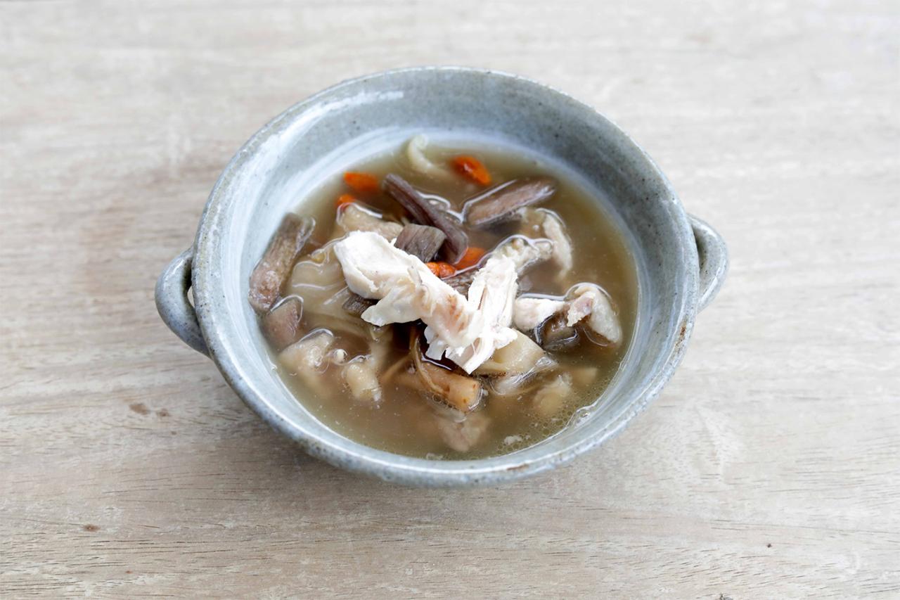骨まわりや頭には、内臓の湯引きで絶品だった鶏油入り醤油だれを回しかけて。遠慮せずに手で持って、しゃぶっていただく。