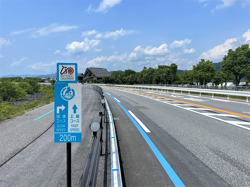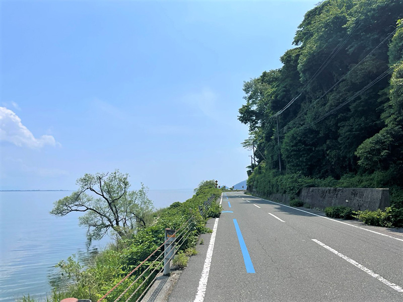 ブルーラインで整備された、分かりやすいビワイチコース。