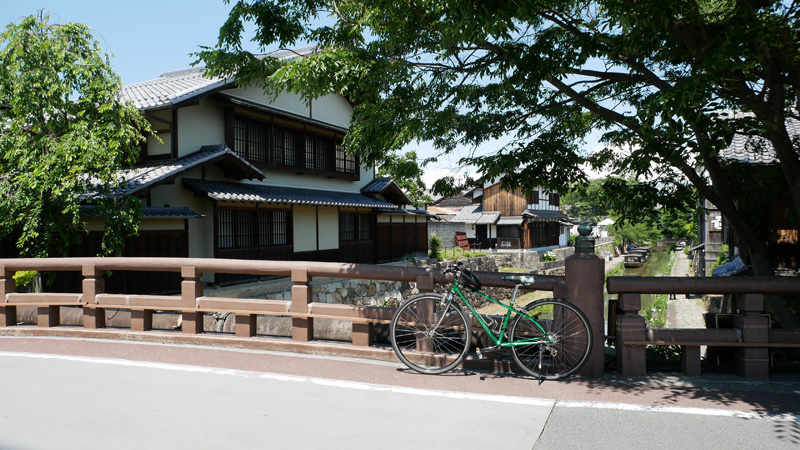 水郷巡りの景観を通り抜けると、ブルーラインを発見、ビワイチのコースに沿って進む。近江牛牛舎、畑、ビニールハウス。少しずつ変わる景色や暮らしを感じ、走る。その土地の空気が丁寧に感じ取れる気がした。