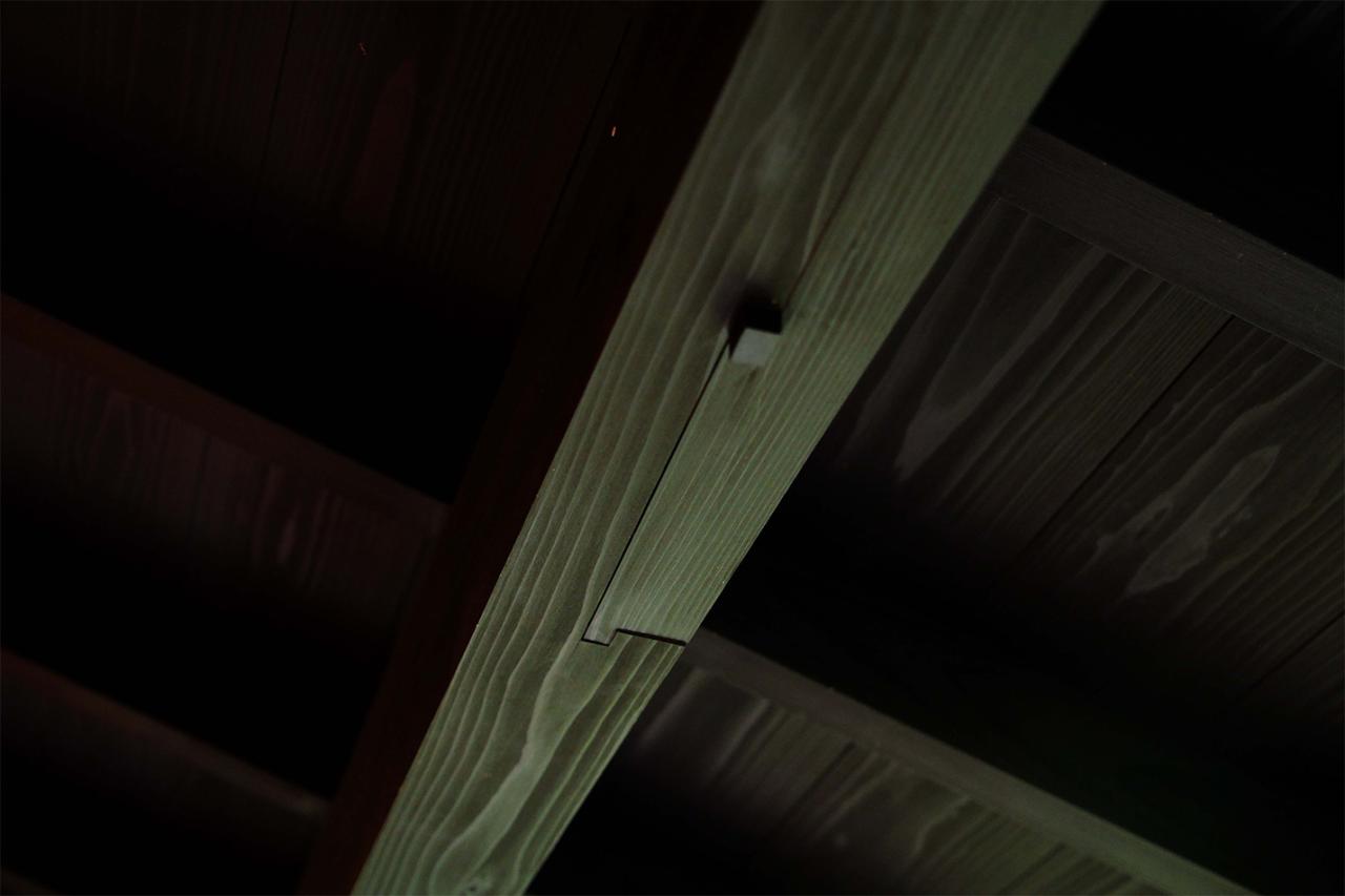 「機械で木材を切るプレカットではなく、日本古来の伝統工法を随所に用いています。釘や金具を使わず、墨付けしてノミで掘った接合部を嵌めていく細やかな職人技を間近で見ることができました。長持ちして強いだけではなく、若い職人さんたちが学んだ技を実装し経年変化を共に確認できる状況が作れたこともうれしく思っています。