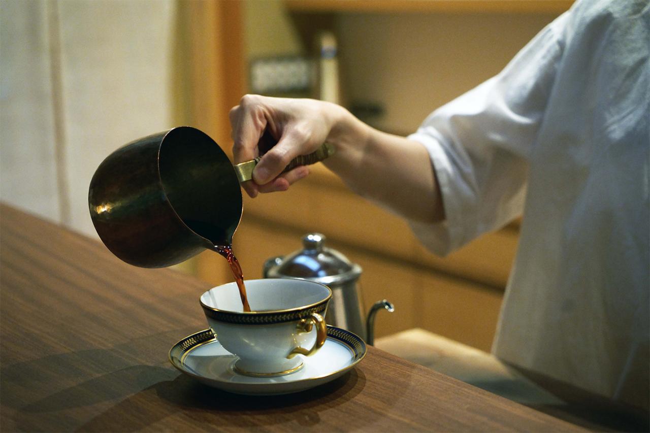 とろりと丸く奥深いファンさんの珈琲は、一度飲んだら忘れられないという人も多い。「1キロあたり、1時間かけて手廻しで焙煎して、それをちょっと寝かせて。ネルフィルターで一杯ずつゆっくりゆっくり淹れるので、時間は掛かってしまうんですけれど」(ファンさん)。丁寧な所作と凛とした空気が美しく、思わずじいっと見入ってしまう。「この淹れ方が点滴注射みたいだって言う方もいます(笑)」(幅さん)。運がよければありつける、昔ながらの喫茶店プリンもファンさんの手作り。とても美味しい。