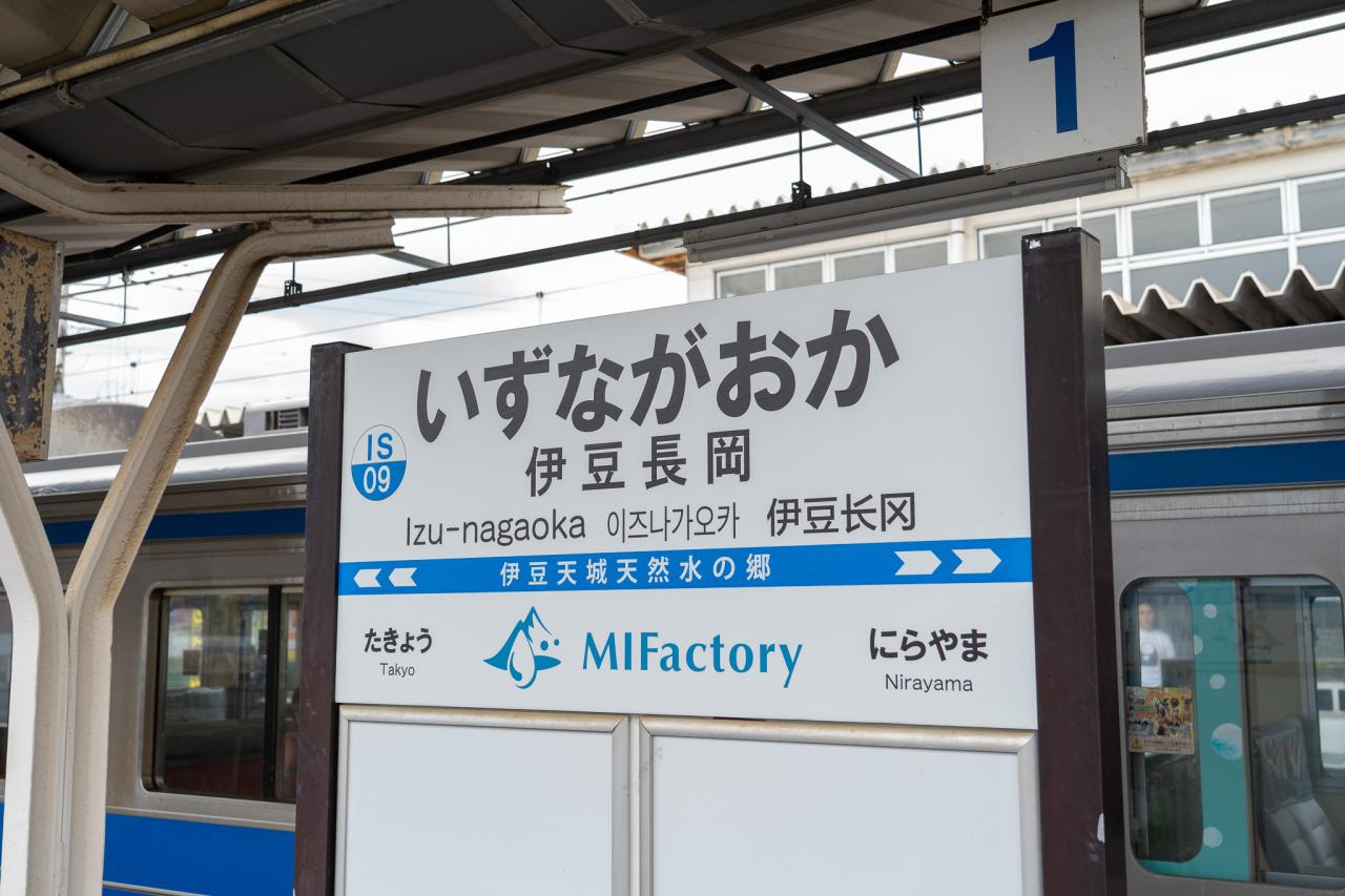えがしらさん号に乗り込みのどかな風景を走ることおよそ20分、スタート地点の伊豆長岡駅に到着です。