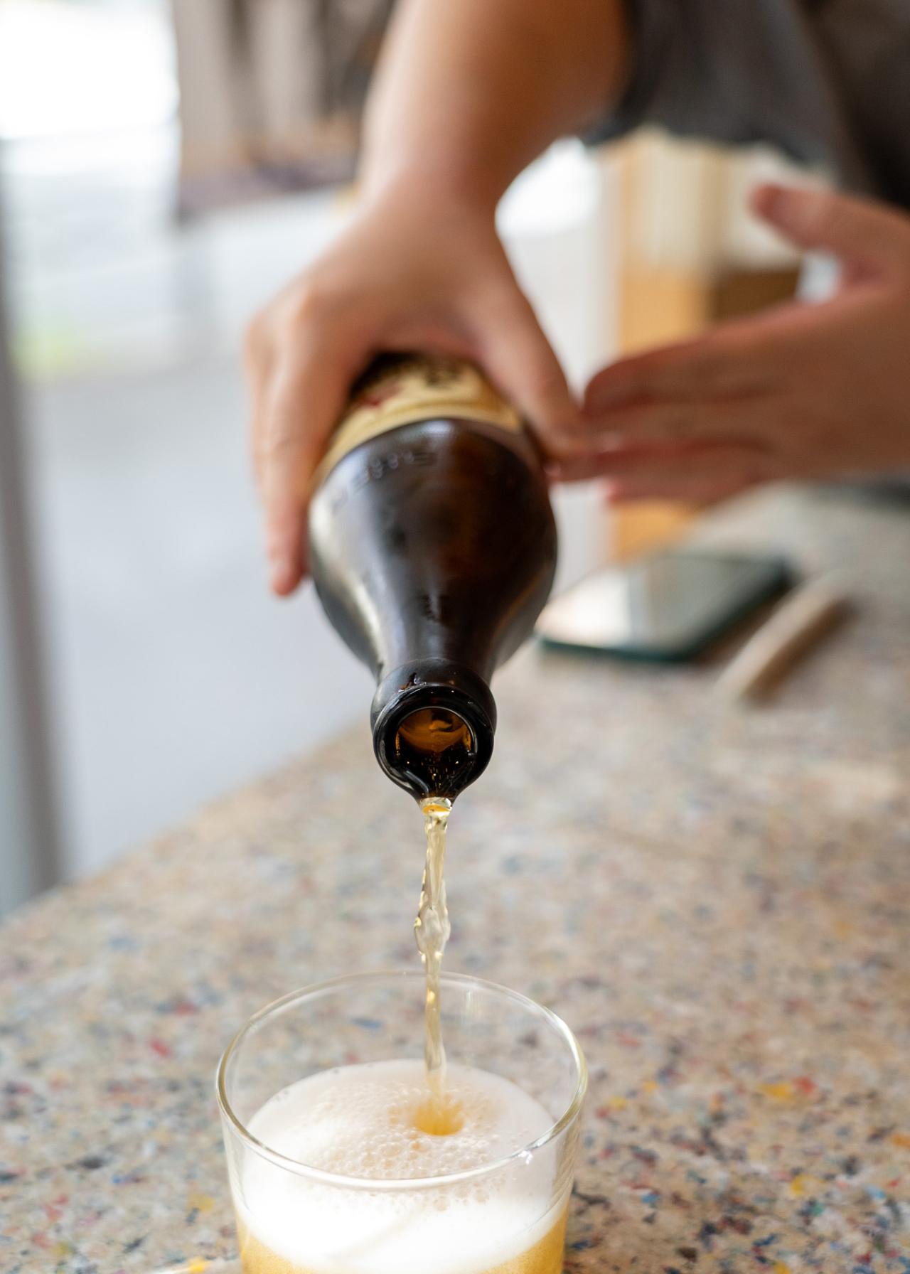 〈バヒュッテ〉では、店内のカウンター席と屋外席で、お酒とちょっとしたおつまみスナックが楽しめる。じつは、当初は立呑みができるお店ではなく、コーヒースタンドになる予定だったという。「夫がお店の運営を行うはずだったんですけど、開店の半年前に急に『君がやったほうがいいと思う』と言い出したんです。私が前の会社で本と雑貨のお店を立ち上げた過程を夫も見ていたので、運営に向いていると思ったのかもしれませんね。立吞みできるお店にしたのは、私がお酒好きだからです。お客さんのリクエストも聞きながら、お酒の種類はかなり増えました」