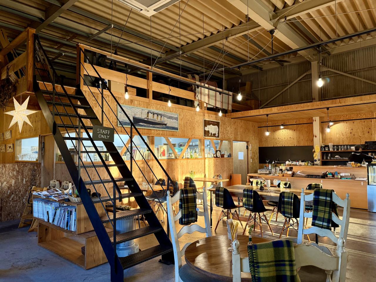 その名のとおり大きくそびえ立つ富士山と周囲には茶畑があり、倉庫を改装したカフェは天井が高く、広くてゆったりとした空間です。店内に入ると可愛らしいモロッコランプに迎えられ、まるで美術館のよう。お店全体がギャラリーとなっていて、時期それぞれに色々なジャンルの作品に出会えるのも楽しみの一つです。また、クラフトコーナーも併設されており、世界に一つだけの作品を購入できます。