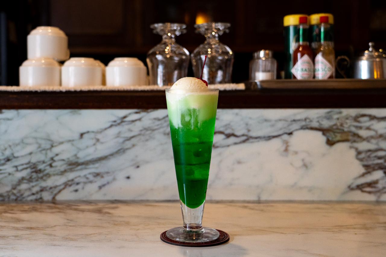 この雰囲気に合うのは…とメニューを見るとミルクセーキが!最近なかなか見ないですよね。注文するとママさんがカウンターの中でシェイカーを振ってくれました。現れたのは、優しい黄色にさくらんぼの鮮やかなピンクの組み合わせ。お店と完全にマッチする色合いです。飲んでみると味も優しくて、なんだか懐かしい甘さが体に沁み渡りました。