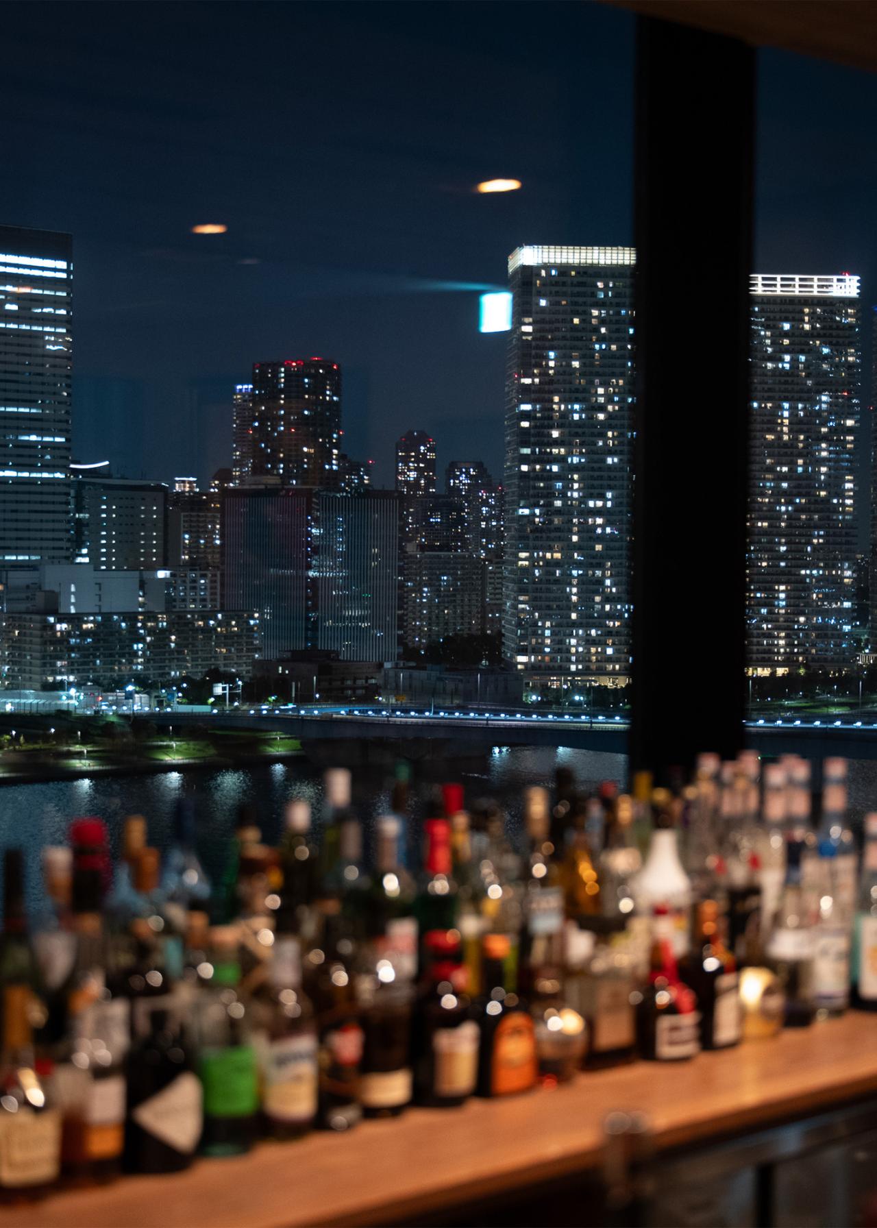 ホテル内には、宿泊者がふらりと立ち寄れる落ち着いたバーもあります。カウンター越しに見えるのは、きらきらと輝く東京の夜景。季節のカクテルやウイスキーなど、ドリンクメニューも豊富で、夜の静けさに身をゆだねながらゆっくりとグラスを傾ける時間は格別です。スタッフおすすめの「東京ベイブルー」というカクテルをいただきました。さっぱりとしていて飲みやすく見た目も鮮やかで、気分も高まる一杯です。