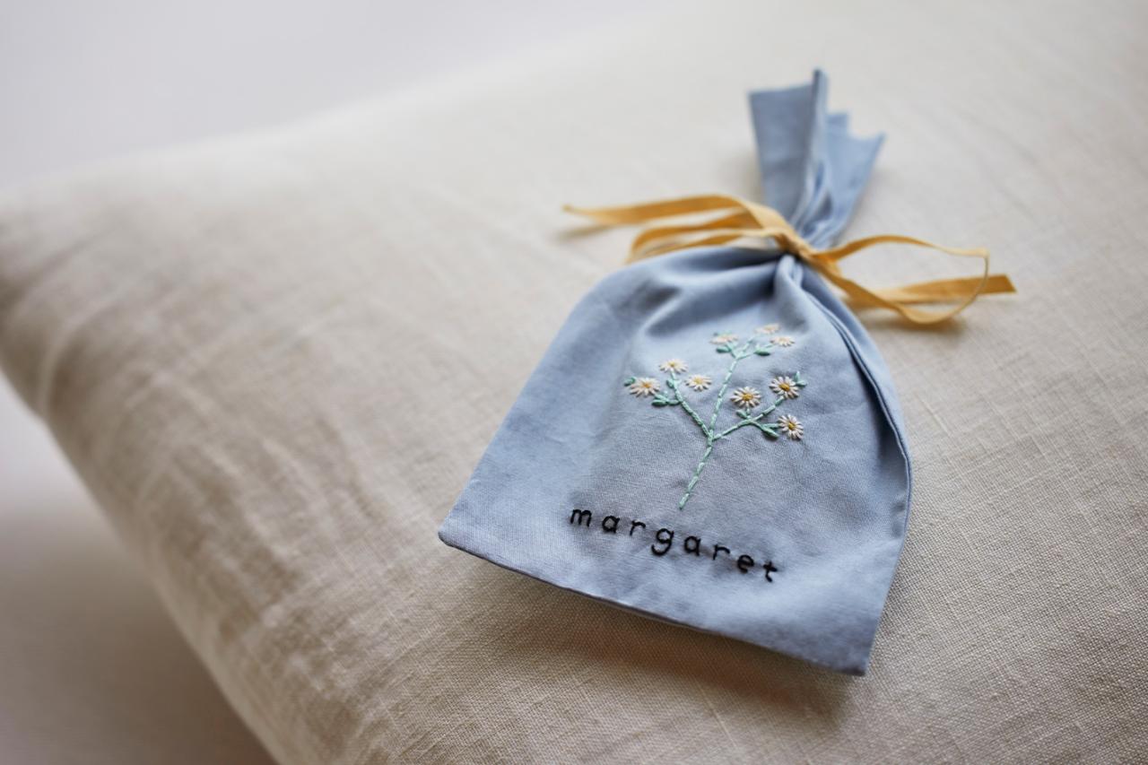 スカーフなどの巻くものは、行き先や電車の中、ホテルが思ったより寒かったということが何度かあり、温度調節をするのに便利なので。頭に巻いたり、首に巻いたり、アクセサリー的にアレンジして使えるのも良いです。旅先で瓶やガラス、クッキーなど割れ物を買ってしまったとき、荷物が増えた時には包むのにも使うことができるので、何枚か持っていきます。好きな香りのポプリを入れたサシェは、お守りのように入れておきます。カバンの中がいい香りになるし、宿泊先で落ち着かなかった時に枕元におくと安心して眠ることができます。