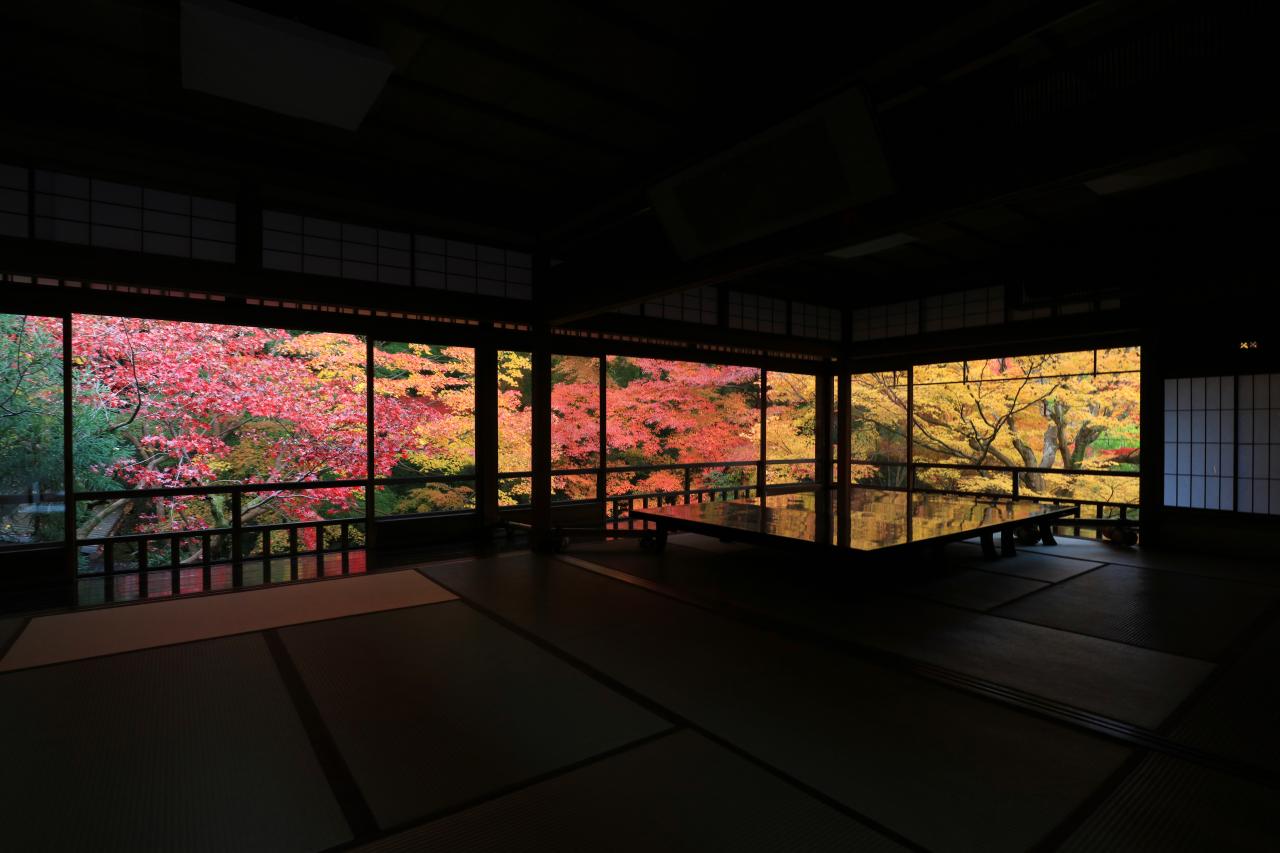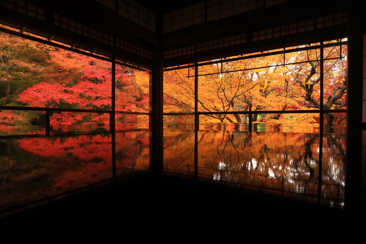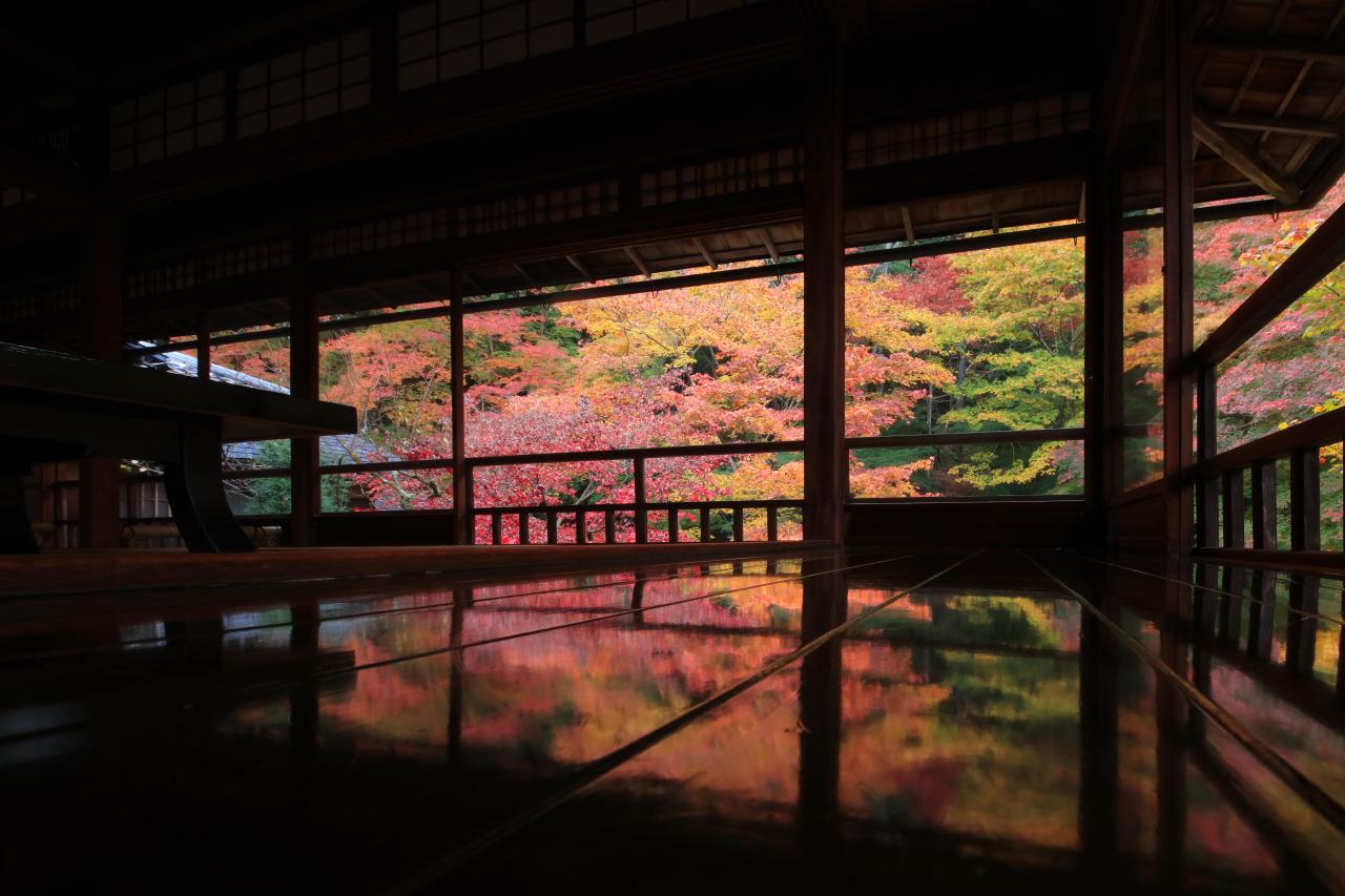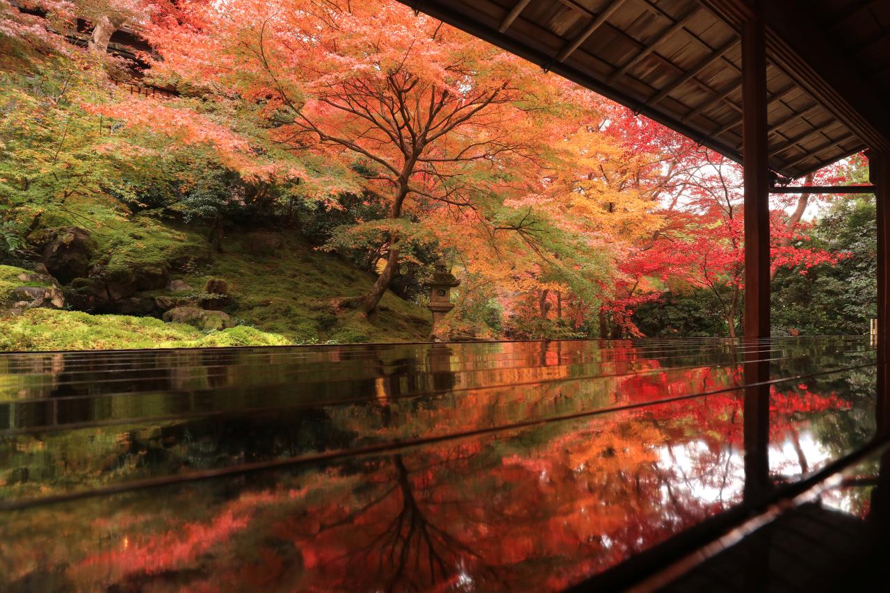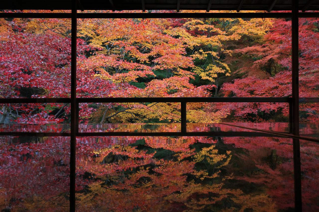 SNSをきっかけに、大人気スポットへと変貌を遂げることがある。市街地から大原へと抜ける途中、普段はひっそりとした八瀬の地に佇む〈瑠璃光院(るりこういん)〉もそのひとつだ。机に映り込むモミジの絶景が話題となり、京都を代表する寺院となった。春季、夏季、秋季に期間限定で公開されるが、最も大勢の人出で賑わうのは紅葉の秋。今年こそはぜひ行きたいとお考えの方も多いことだろう。秋に訪ねた模様をお届けしよう。
