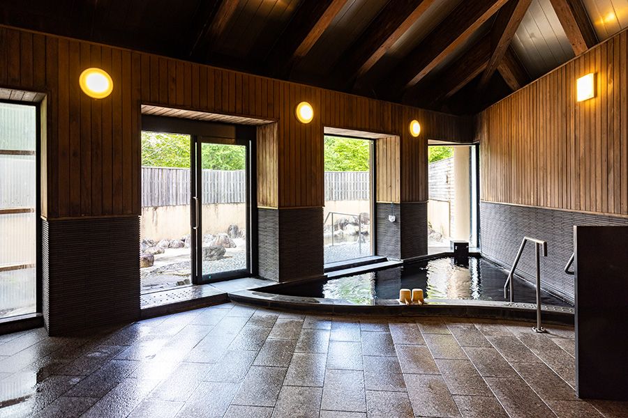 白山麓に湧き出る天然温泉はとろりと柔らかな泉質で、肌をなめらかにしてくれる“美肌の湯”。露天風呂では、春や夏には蛙や蝉の声を聞き、秋はお月見、冬は雪見と、四季折々の風情を堪能することができる。大自然の中で満天の星を仰ぎ見れば、心も身体もゆるりとほどけ、日々の悩みやストレスもちっぽけなものに感じられることだろう。