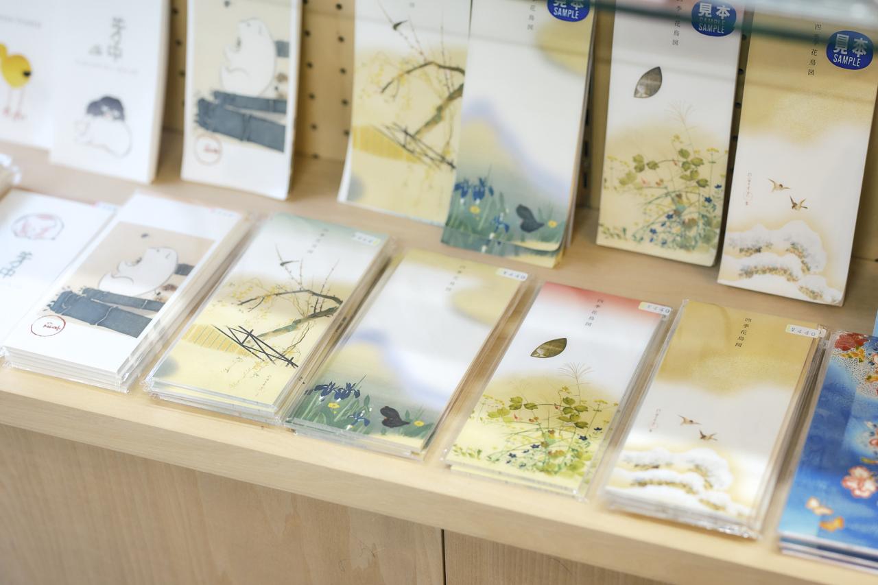ミュージアムショップは数年前にリニューアルし、2階に移転された。絨毯や天井のデザインを見ると、廊下とショップを緩やかに隔てるような、波打ち際のような意匠がほどこされている。大きな窓から見える中庭の木々にも癒されながら、ショッピングを始めよう。