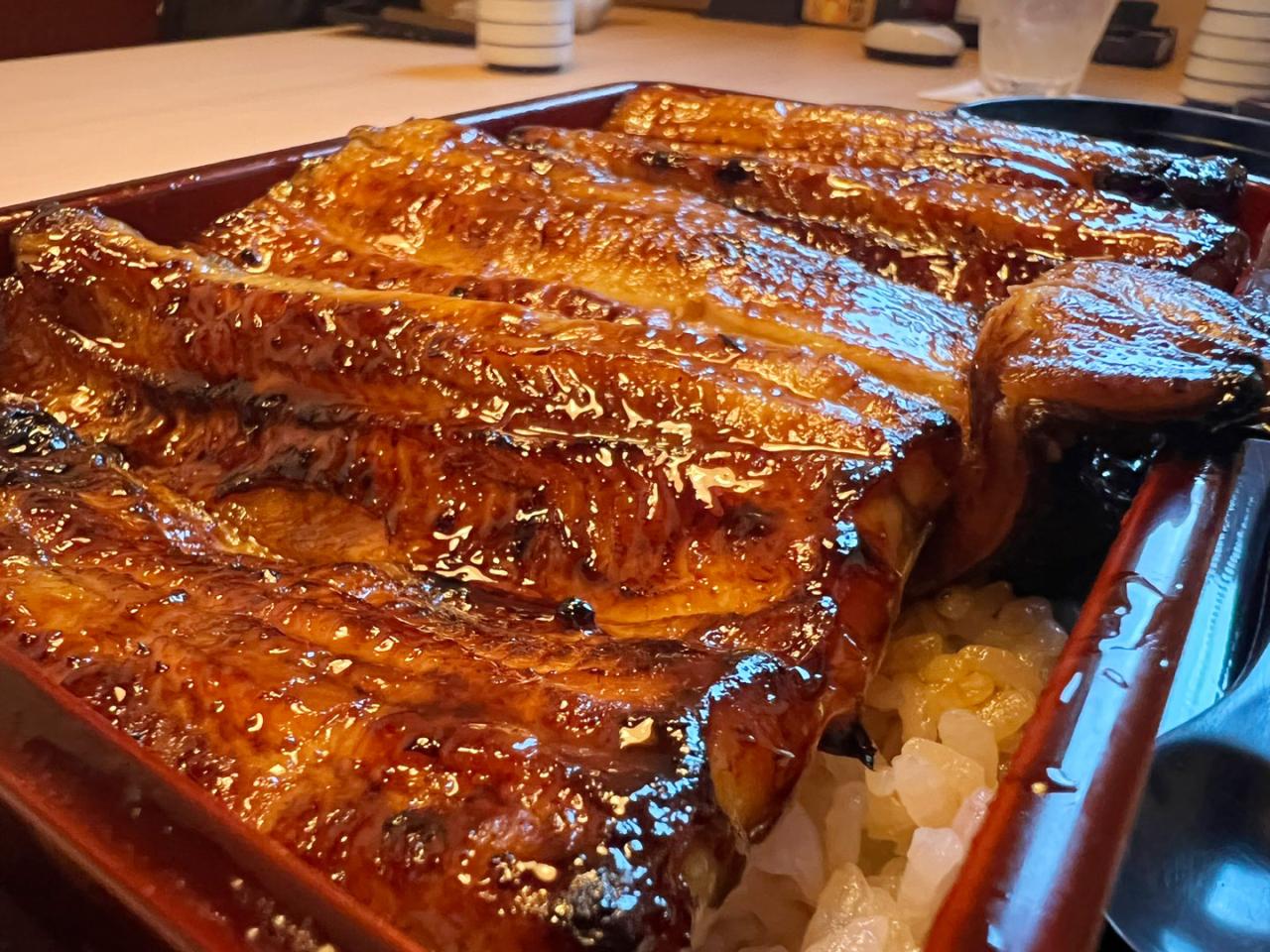 今回は贅沢しておすすめいただいた「特上うな重」を注文。この重箱の蓋を開けるわくわく感は、何度食べても変わらない楽しみのひとつ。重箱を開けると大きなうなぎが二尾入っており、いい香りが一気に鼻をかけめぐります。さっそくお箸を入れると、炭火ならではなのか、表面はパリッとしているのに中はふかふか。秘伝の継ぎ足しタレがうなぎをより一層美味しくさせ、こだわりのお米との相性も抜群でした。セットとなっている肝吸いは、上品な味と香りでうな重の箸休めにぴったりです。