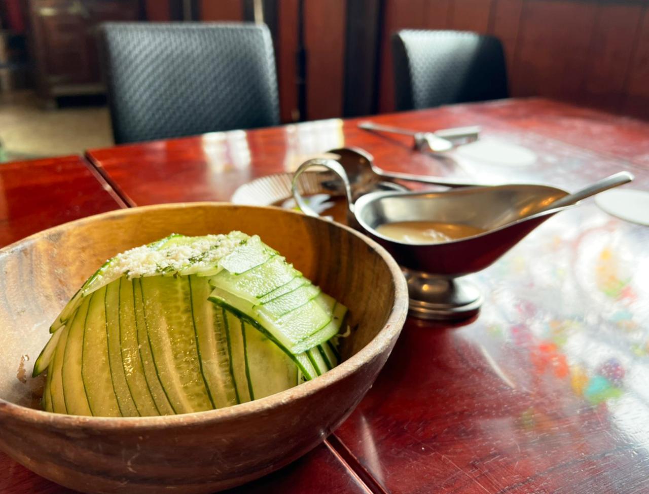 ミートソーススパゲティの上からたっぷりとチーズがかかった、「スパピザ」は食欲が直接刺激される衝撃のビジュアル!それもそのはず、元々は横浜港で働く船員のお腹を満たすために発案されたボリューム満点のメニューとのこと。スパゲティをピザのように焼くから、スパピザ。熱い鉄板の上でカリカリになったチーズと、とろとろにとろけたチーズの両方を、太めのスパゲティと一緒にフォークに巻き付け口に運べば、もはや約束された美味しさが広がります。トッピングされたエビも大振りで、良いアクセントに。ハフハフと熱くなった口内は冷たいビールでクールダウンしつつ、熱々のうちに夢中でいただきました。