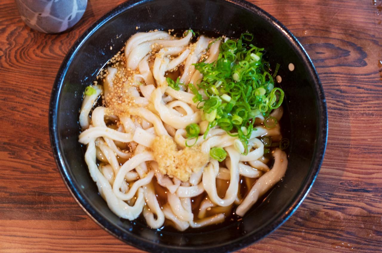 本町オリベストリートをすっかり堪能し、多治見橋を渡って駅の方へ歩いていると、味わい深い佇まいのうどん屋さん「竹の子」を発見。年季の入った暖簾をくぐると、カウンターとテーブルのコンパクトな作りながらも、雰囲気があります。壁に貼ってあるメニューを見ると「ころ」とあり、聞くと主に東海地方で食べられているうどんだそう。